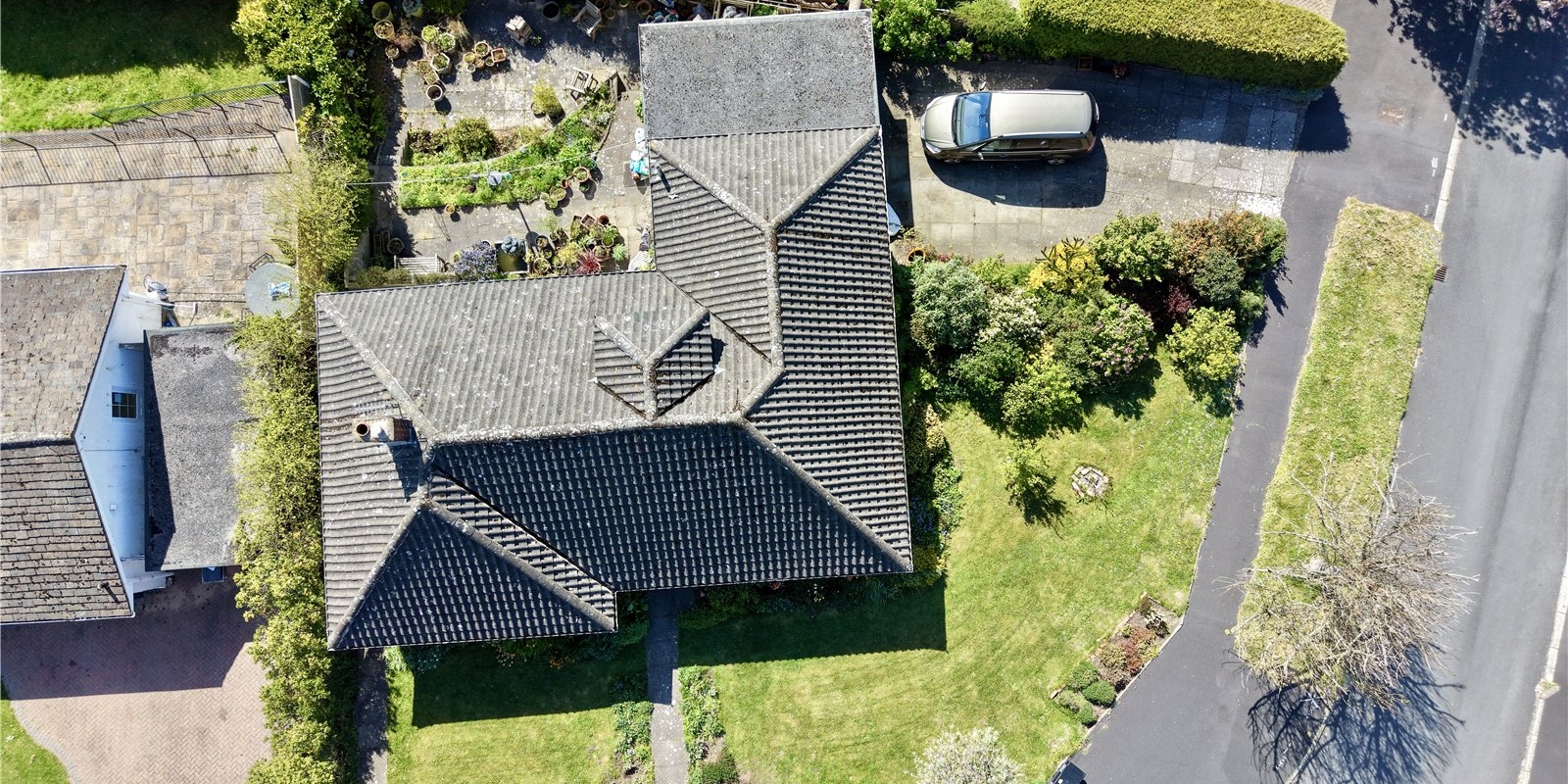 Externally, the property continues to impress. Set within an elevated plot to fully capture the surrounding scenery, it features lawned gardens to the front and side, a driveway leading to a detached garage, and a low-maintenance rear garden.
