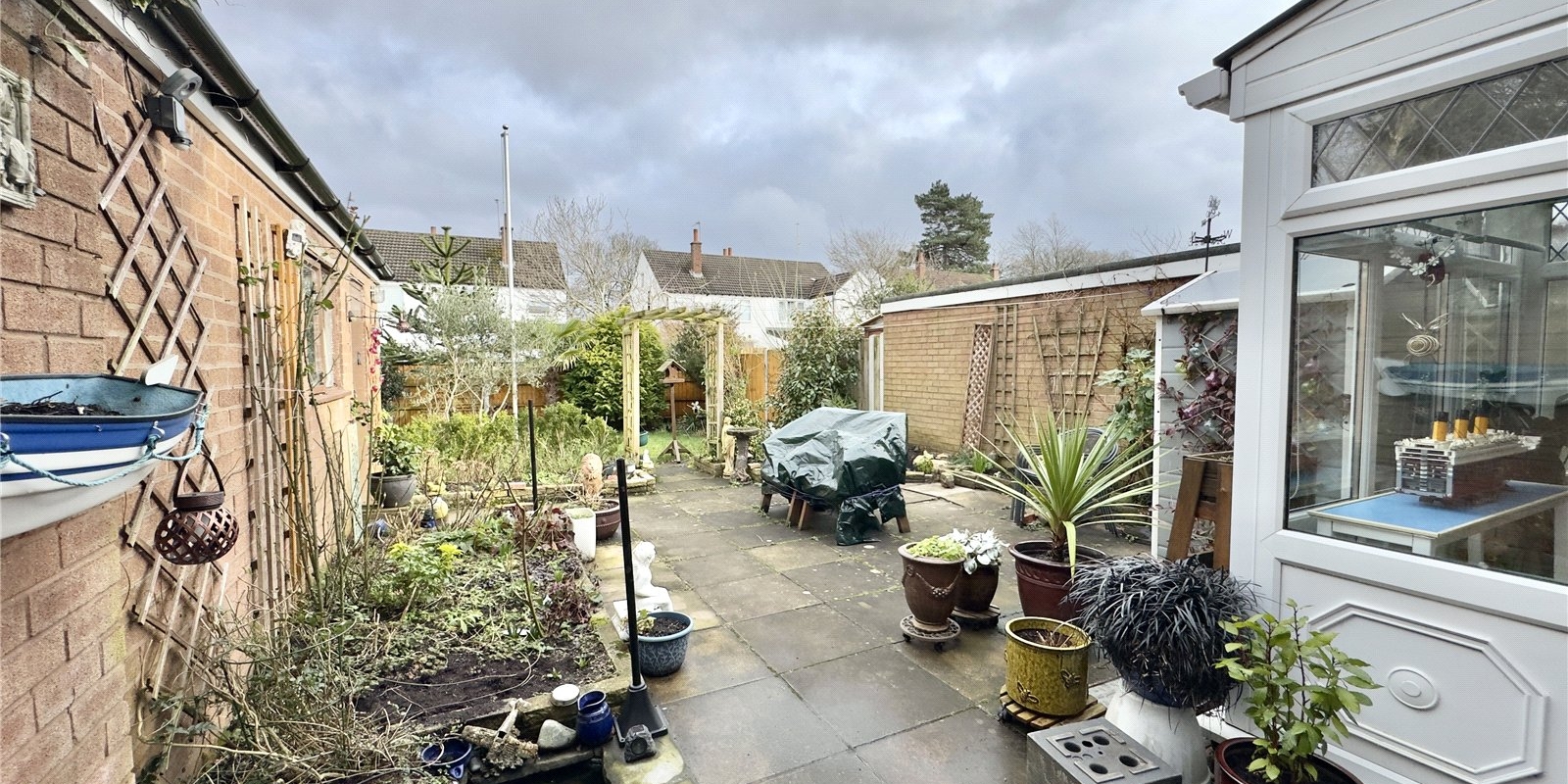 Rear Garden - Lovely maintained garden with large paved patio, double gates to the driveway, secluded lawned garden to the rear with mature trees and shrubs.