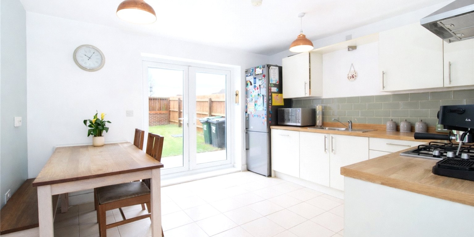 Inside, the accommodation is thoughtfully laid out. The ground floor comprises a welcoming entrance hallway leading into a generous living room, perfect for everyday comfort. To the rear, a contemporary dining kitchen provides a fantastic social space, complete with patio doors that open directly onto the garden, allowing plenty of natural light to flood in. A separate utility room and convenient downstairs WC complete the ground floor.