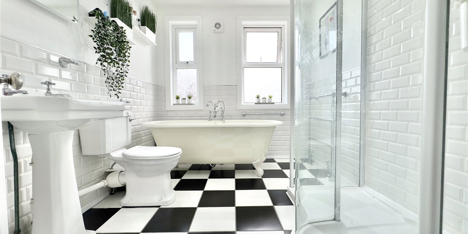On the first floor, there are four generously sized double bedrooms and a lovely family bathroom with a freestanding bath and separate shower cubicle.