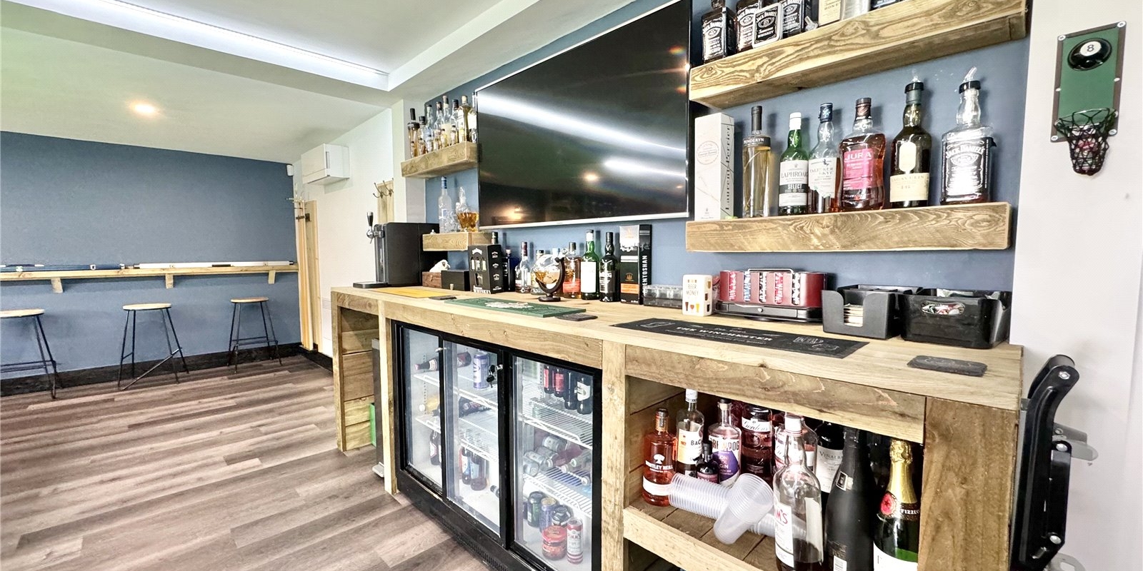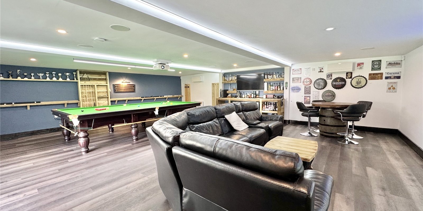 At the rear, a garden room and bar add a real WOW factor, perfect for entertaining or relaxing in style.