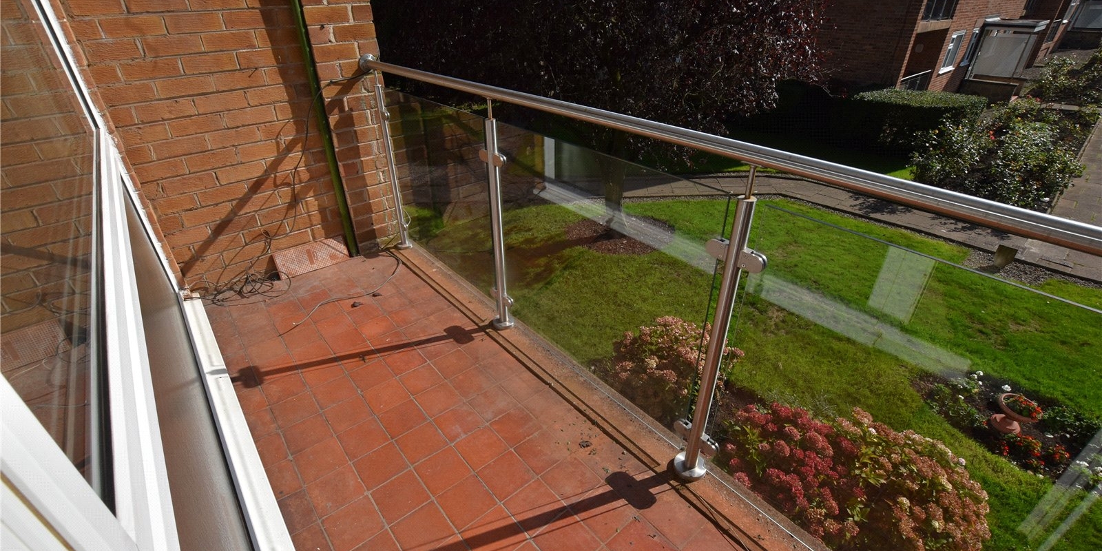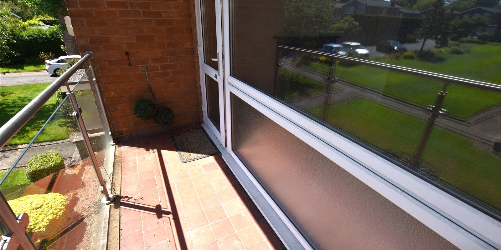 The highlight of the apartment is the extensive lounge/diner, which boasts dual-aspect windows, filling the room with natural light and creating a bright and airy atmosphere. A door opens onto the front balcony, an ideal spot for enjoying morning coffee or evening sunsets while watching the birds play in the open green space and trees.