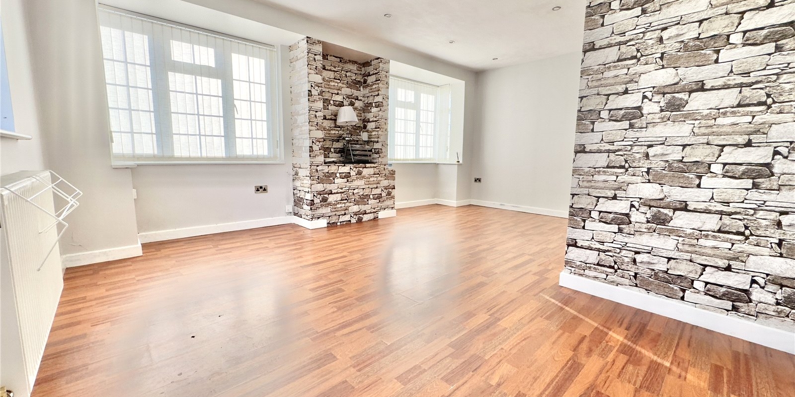 Upon entering, you’ll find a welcoming lounge featuring a side door and large double windows at the front, providing plenty of natural light. The internal hallway leads to two bedrooms. A bathroom is conveniently located nearby.