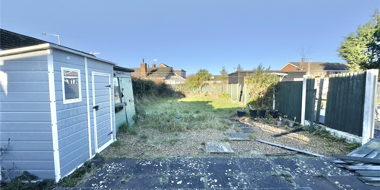 At the rear of the bungalow, the kitchen is spacious and functional, providing a great canvas for modernizing and enhancing your culinary experience. From the kitchen, you can access an extensive conservatory that overlooks the rear garden, offering a bright space that could be transformed into a lovely area for relaxation or entertaining.