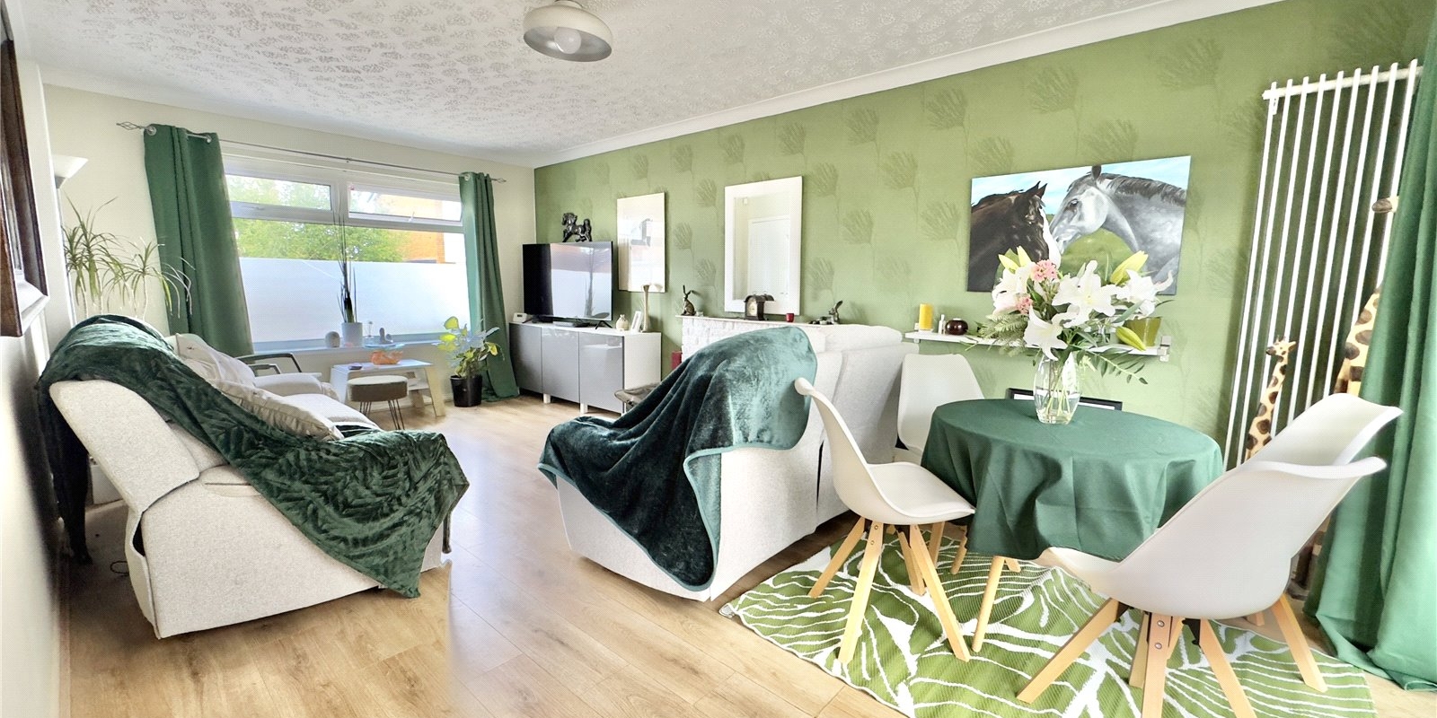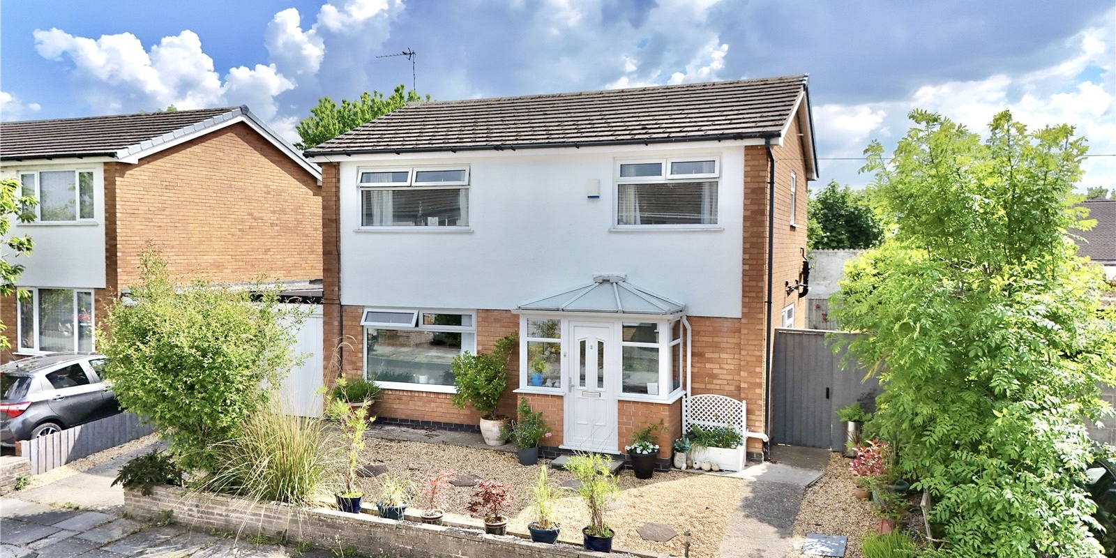 Outside, the home continues to shine. The front garden is attractively maintained and the rear garden provides a private, family-friendly space for outdoor entertaining, play, or simply relaxing in the sun. A driveway offers off-road parking and leads to the attached garage, providing additional storage or potential for conversion (subject to planning).