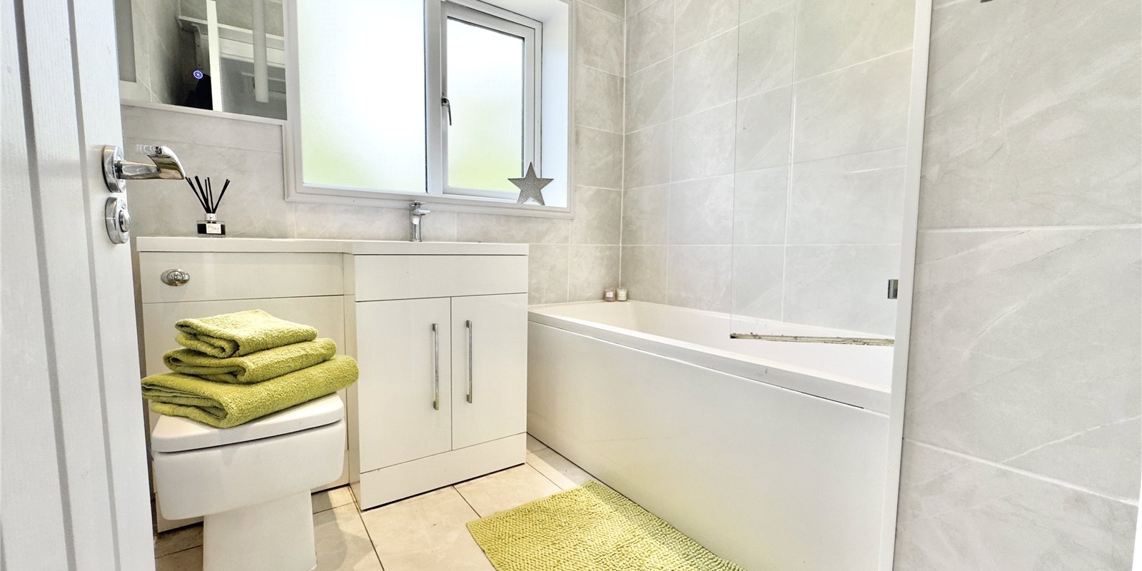 Upstairs, the property offers three well-proportioned bedrooms and a sleek, modern family bathroom. Natural light fills each room, enhanced by the neutral décor that runs throughout the home.