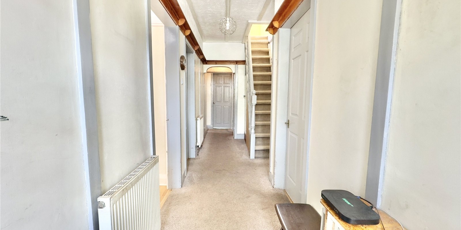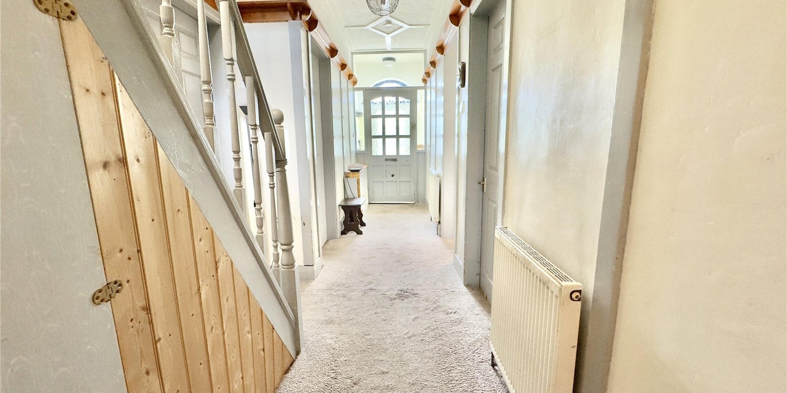 From the hallway, a solid staircase leads up to a large attic space, which is currently divided into multiple sections providing substantial storage. This area also offers excellent potential for conversion into additional living space, such as extra bedrooms, a home office, or a hobby room, subject to building regulations.