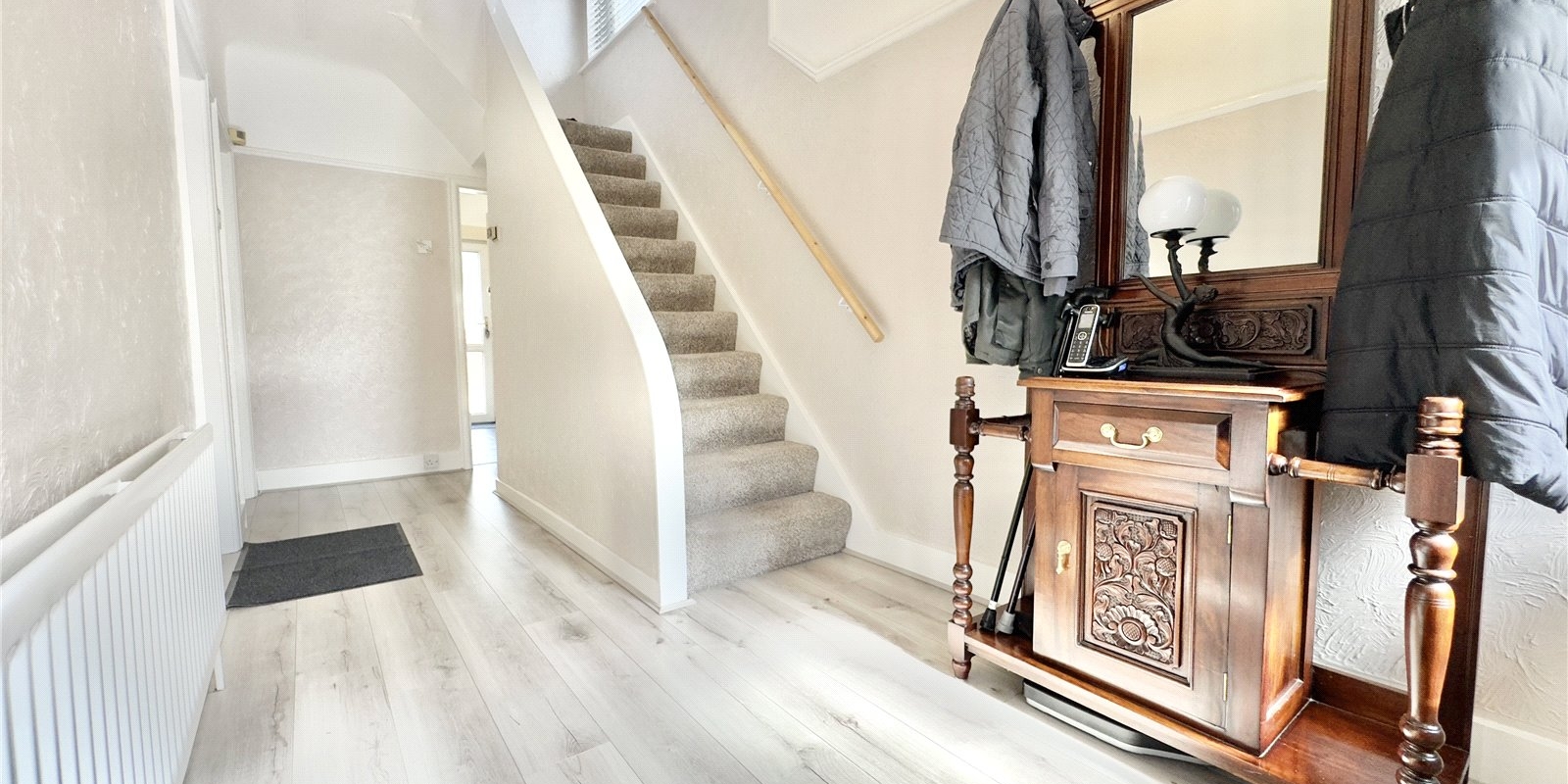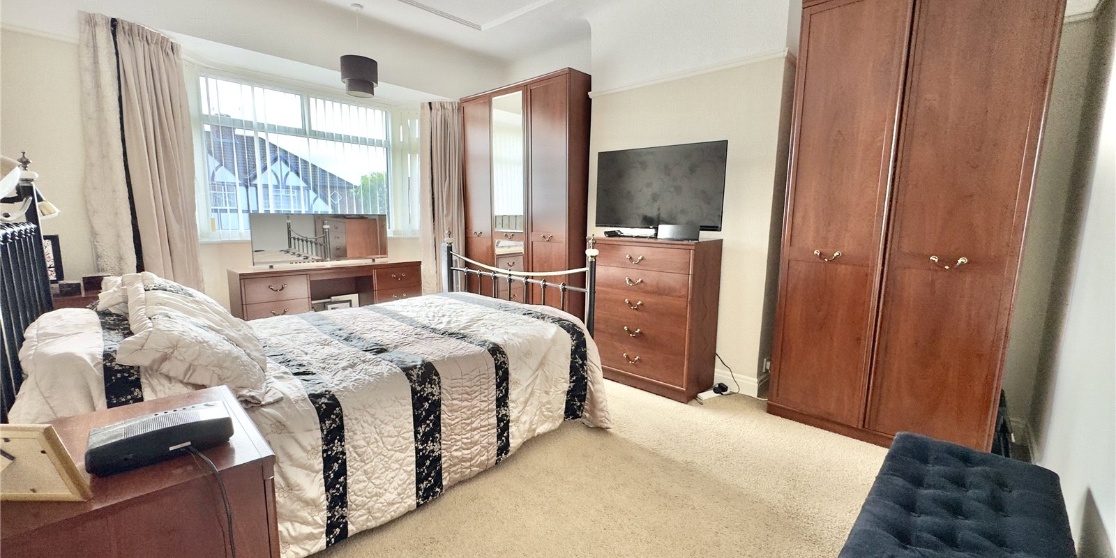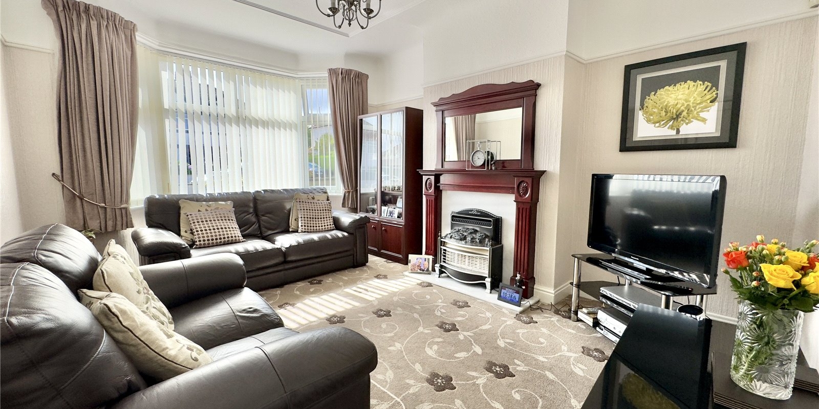 On entering the home, you're greeted by a bright and airy hallway that sets the tone for the generous living space throughout. To the front, a charming living room features a beautiful bay window that floods the space with natural light, complemented by a focal fireplace for cosy evenings. At the rear, the separate dining room also enjoys a fireplace and boasts a large window with views over the garden—ideal for family meals or entertaining.