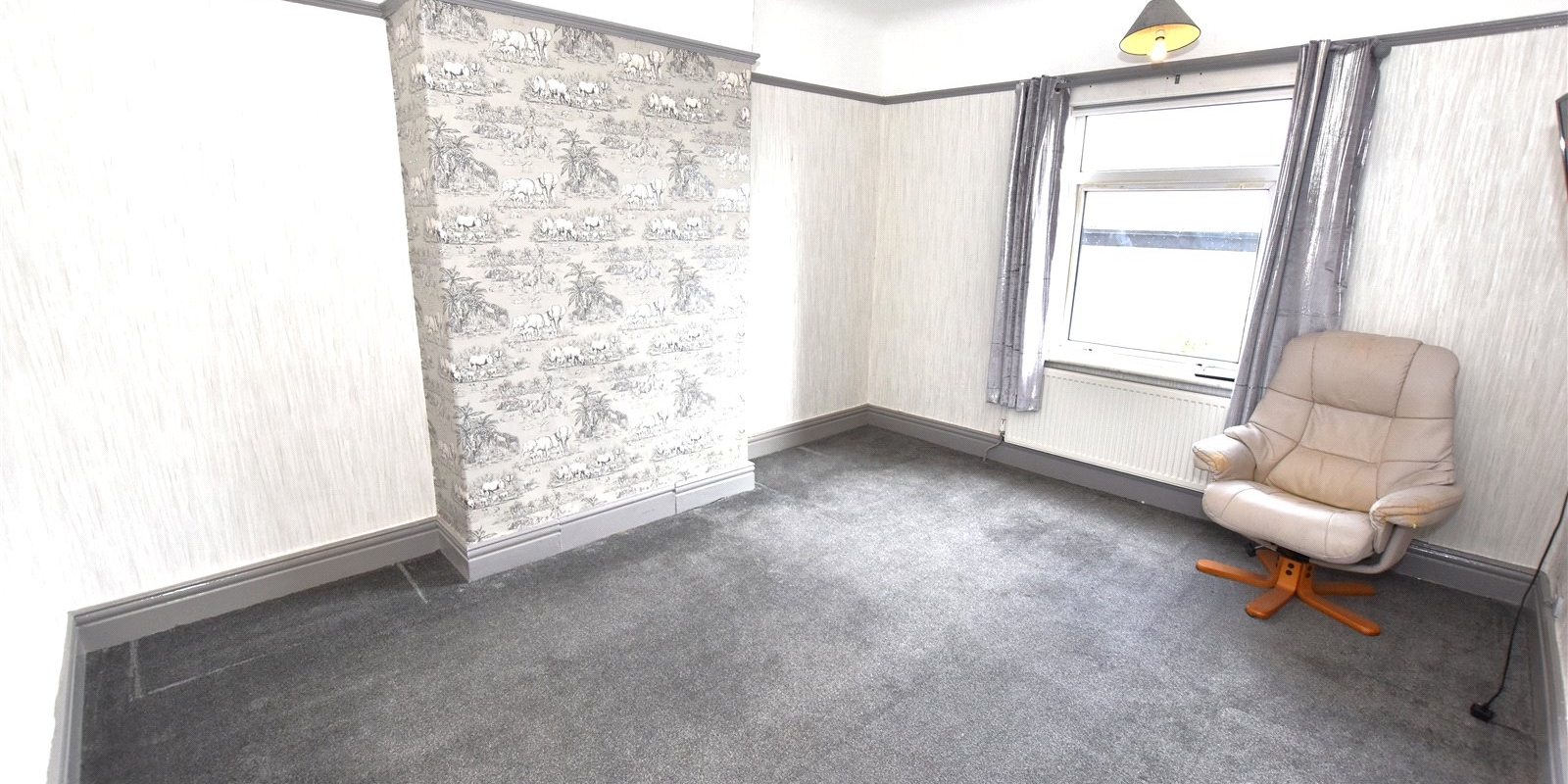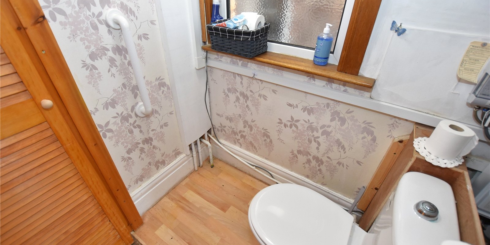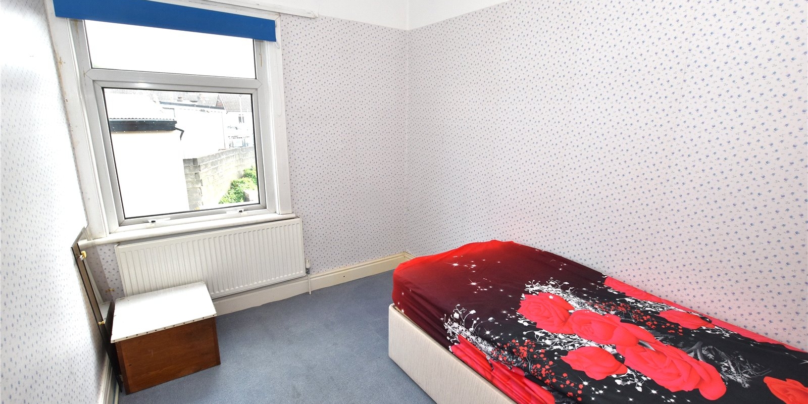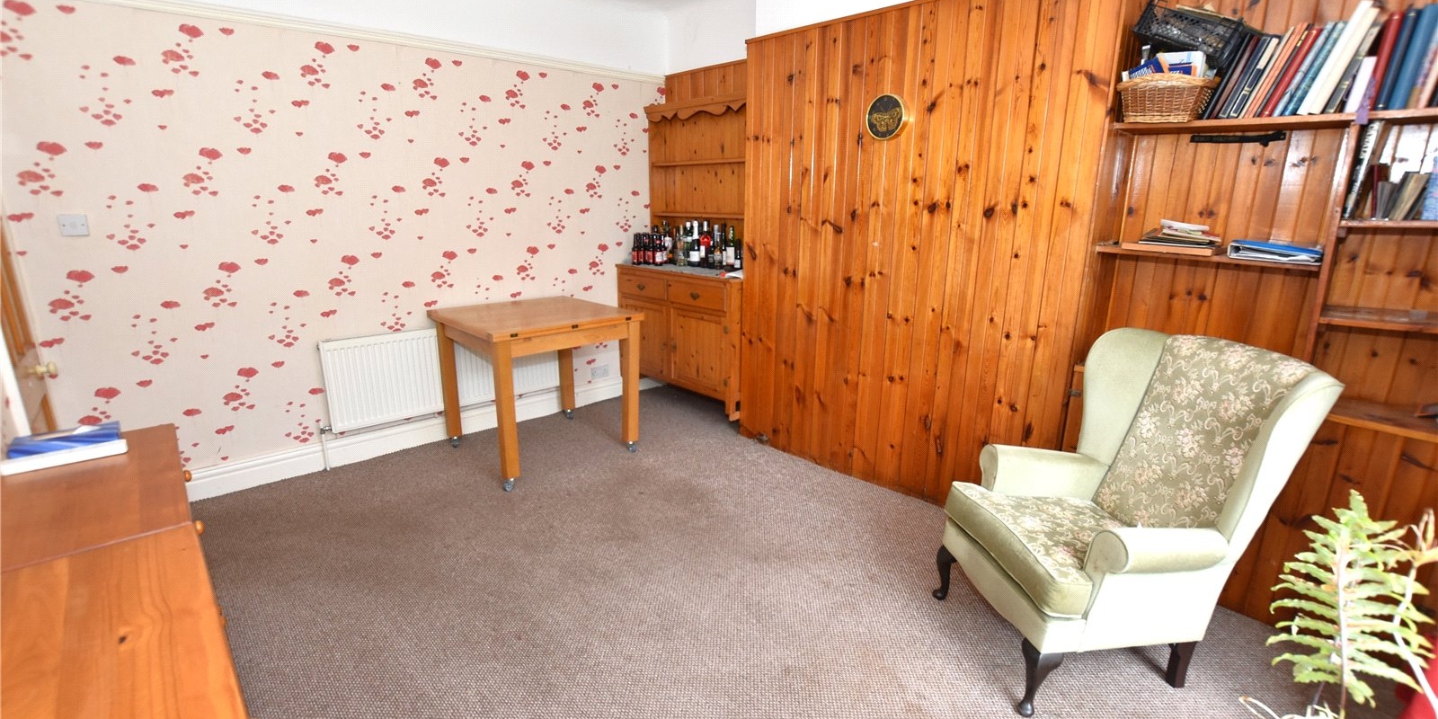 Upstairs, the property offers three good-sized bedrooms and a walk-in shower room, all accessed from a central landing. The home retains high ceilings and period character throughout, offering a solid base for cosmetic updating.