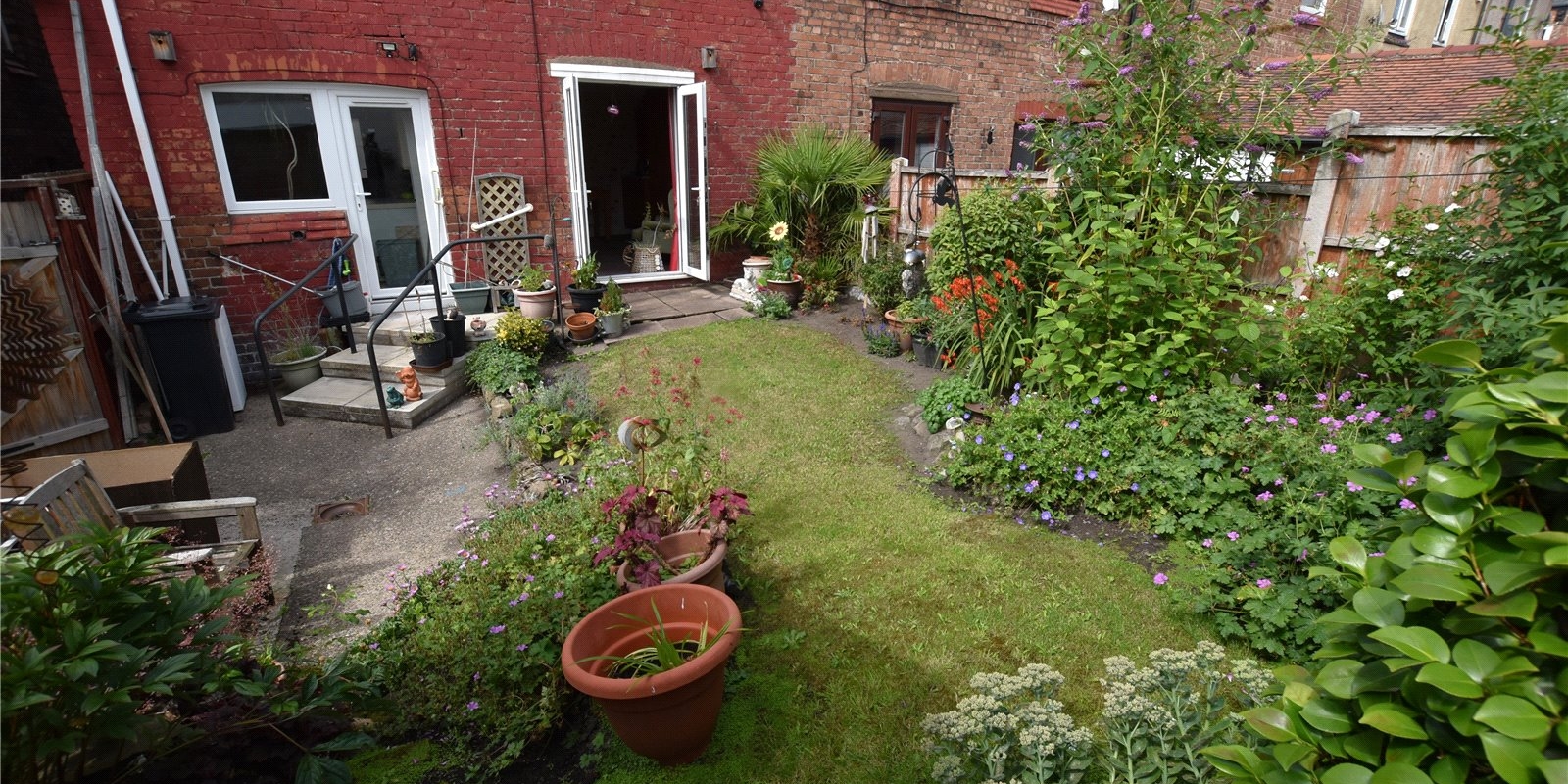 Externally, the property boasts a rare and generous rear garden for this area, featuring a well-maintained lawn, colourful mature borders, a wooden shed, and steps down leading to a patio—ideal for outdoor relaxation or entertaining. Neatly planted flower beds enhances the front approach, giving the home standout curb appeal.