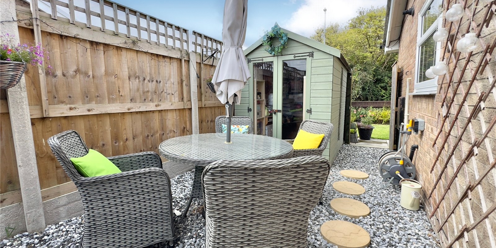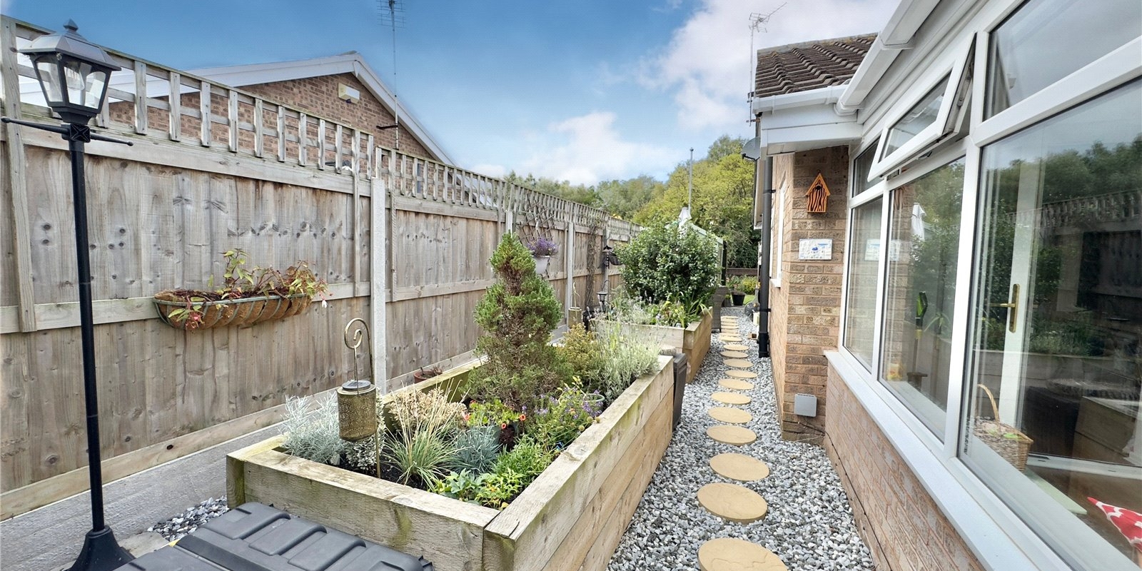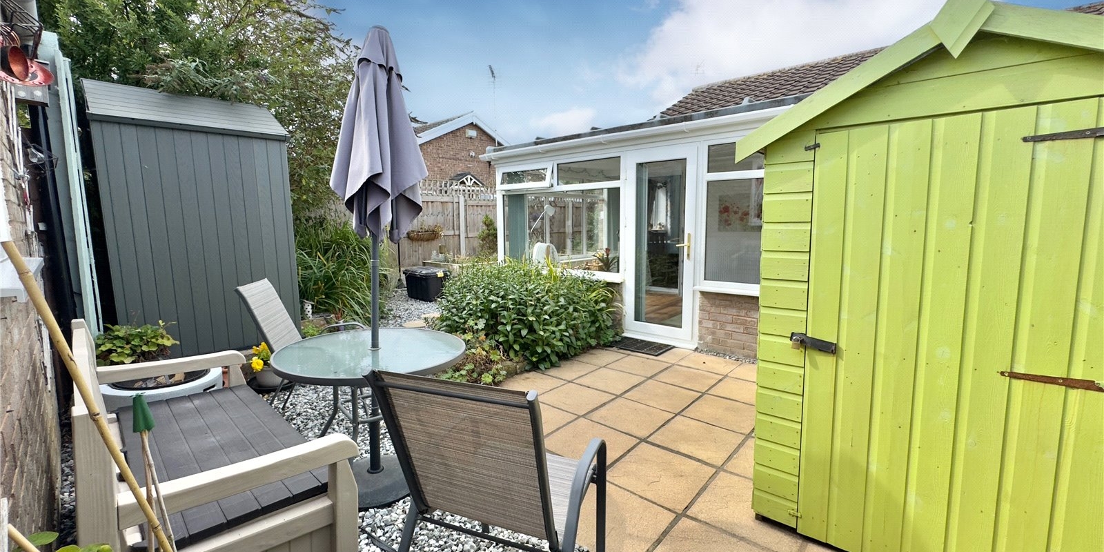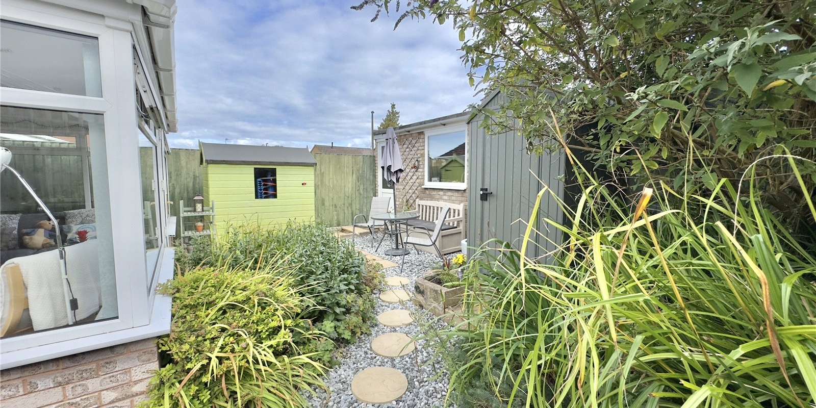 The bungalow sits on a generous plot, with gardens that have been lovingly maintained to create a private haven, ideal for enjoying a morning coffee, summer barbecues, or simply unwinding in the sunshine. The well-kept lawns, established plants, and patio areas make it a space to enjoy all year round.
