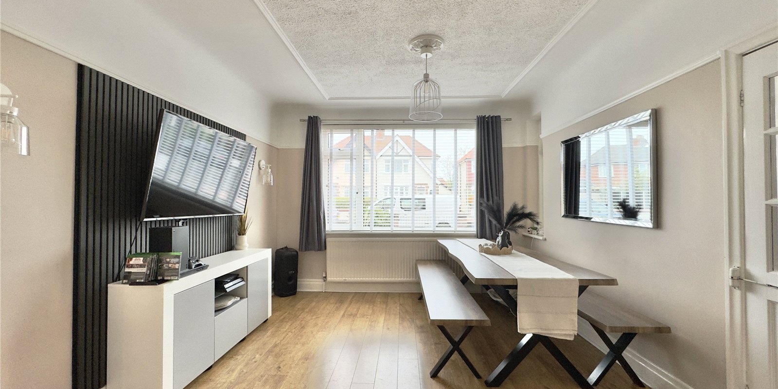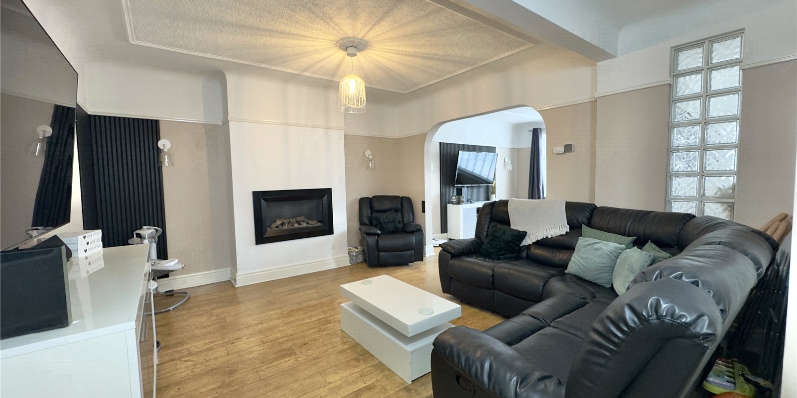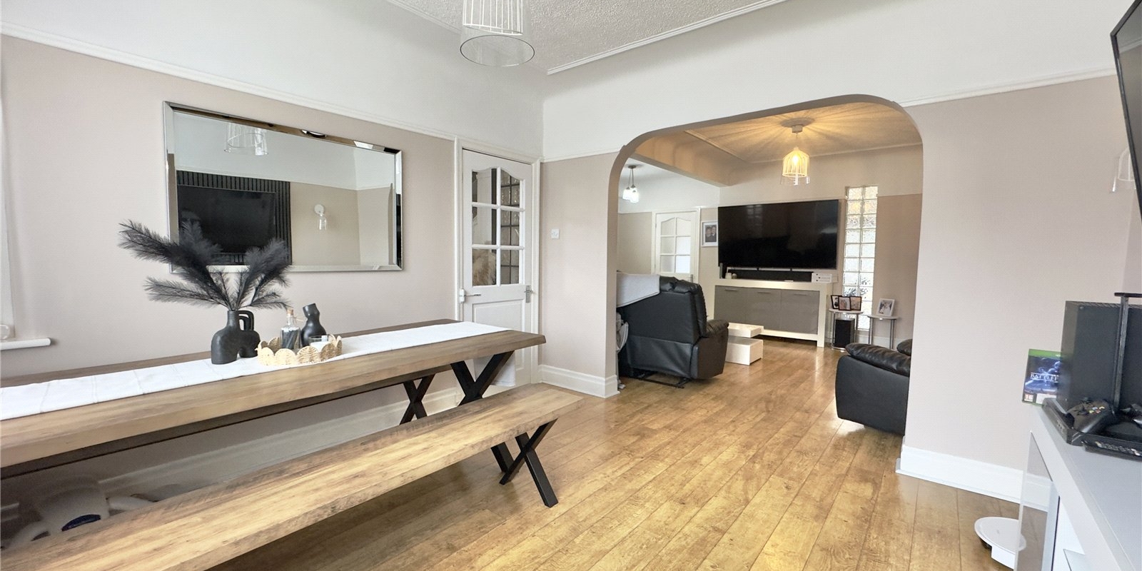 Upon entering, you are welcomed by a porch that leads into a bright and inviting hallway. To the front of the property is a separate dining room, perfect for family meals or entertaining guests. Beyond this, a spacious 18ft through-lounge offers a versatile living space, complete with a large built-in storage cupboard, making it as practical as it is comfortable.