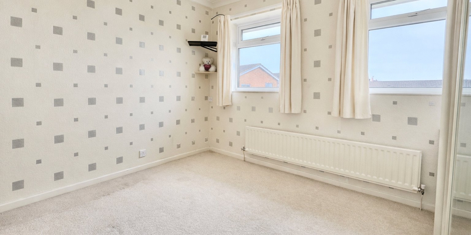 To the first floor, there are two well-proportioned bedrooms, both with storage, along with a landing cupboard housing the boiler and a modern white bathroom suite with a shower over the bath. The property enjoys an abundance of natural light throughout, further enhancing its warm and inviting feel.