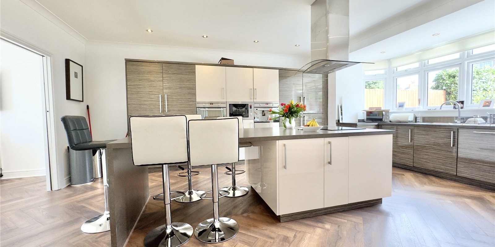 The property consists: gated driveway with ample room for multiple vehicles, vestibule entrance, a large entrance hall with cloak room, a downstairs WC, two separate reception rooms; both with access to the rear garden, and a large kitchen with a huge centre island ideal for family life and dining.