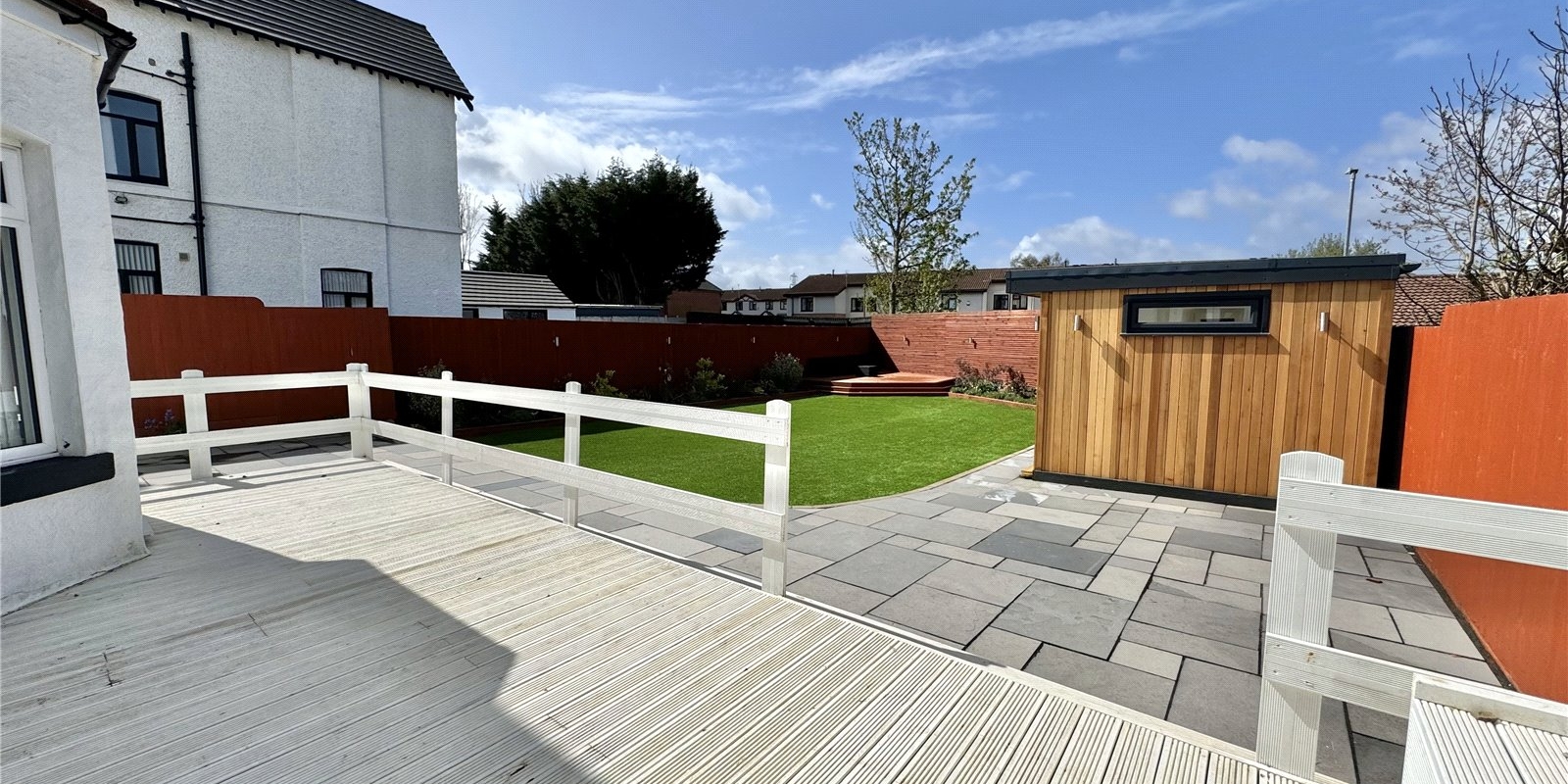 Externally, the property has side access from the stunning front driveway to the rear garden, finished with slate paving, an artificial laid lawn, an outbuilding utilised as a relaxing summer house, and a storage room in the extension to the side of the home.