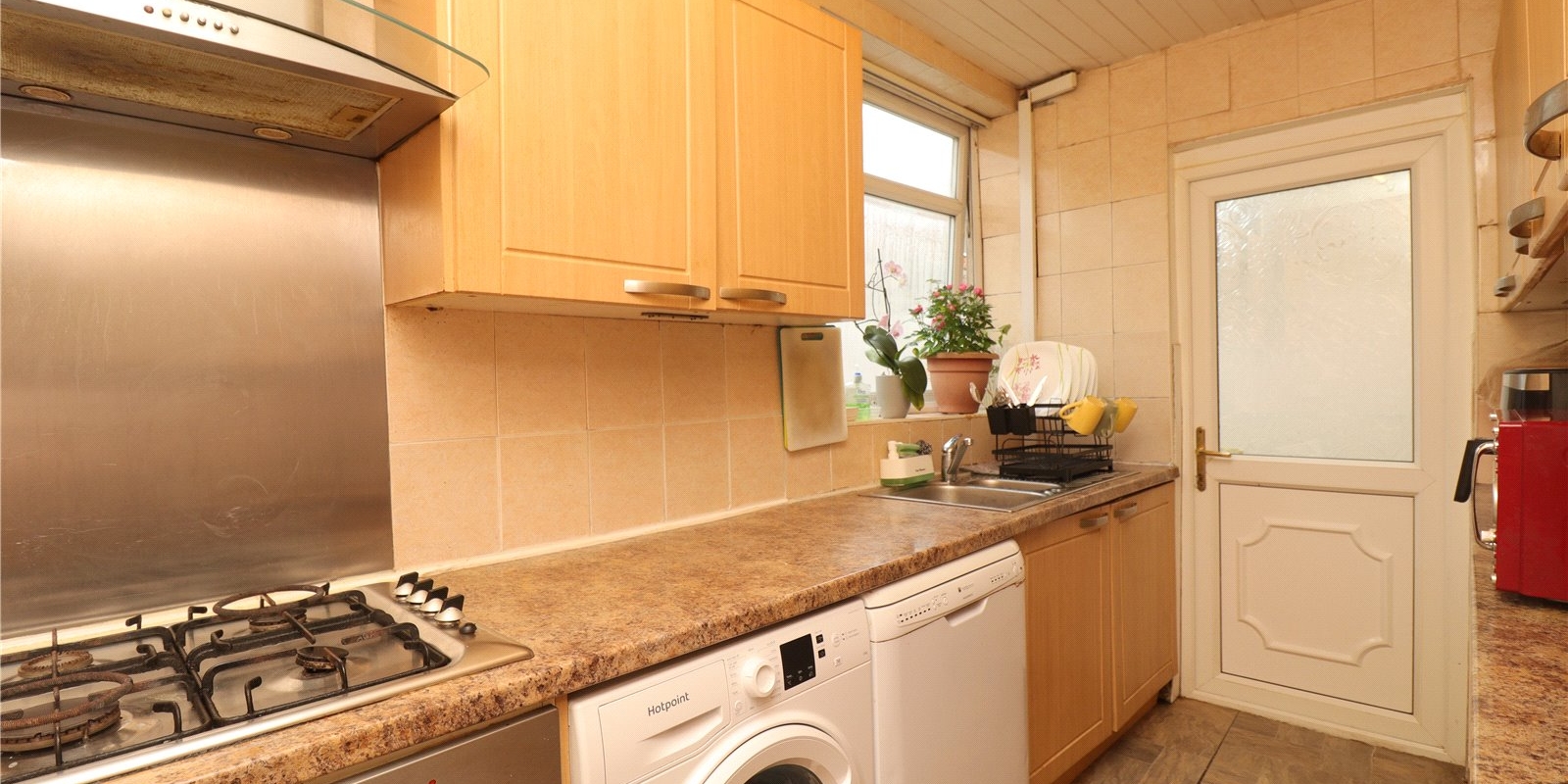 The ground floor comprises of; large living room, what was originally two reception rooms, has now been knocked into one large spacious living accommodation. Through the hall to the rear of the property is a dining room with archway into the kitchen, equipped with ample counter and cupboard space.