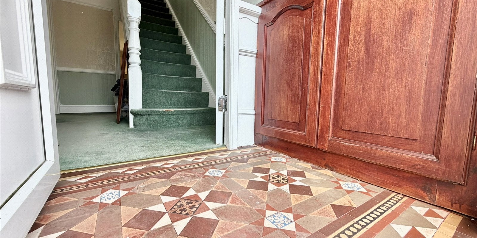 The accommodation begins with a charming entrance porch featuring original tiling, leading into a welcoming hallway with staircase to the first floor and access to two well-proportioned reception rooms. The current owners have advised that parquet flooring runs through the ground floor covering the lounge and dining room.