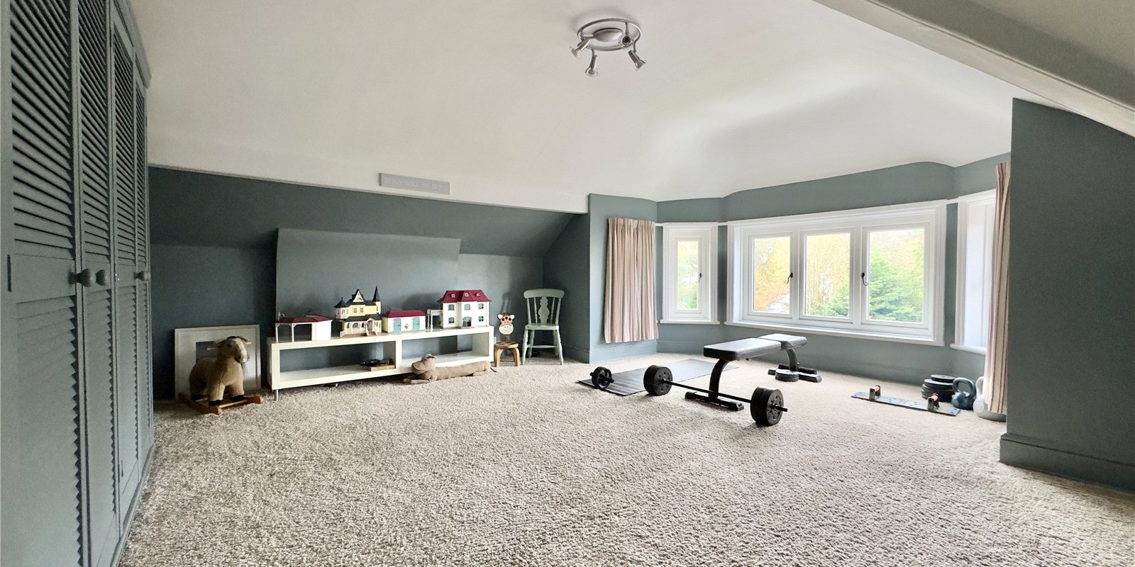 The principal bedroom is a luxurious retreat, benefitting from a generous four-piece en-suite complete with a feature roll-top claw-foot bath. Two additional family bathrooms are thoughtfully positioned on the half landings, serving five further exceptionally spacious bedrooms, with the top-floor rooms offering particularly grand proportions.