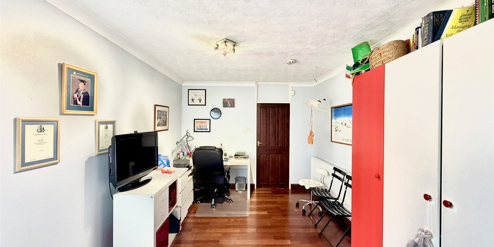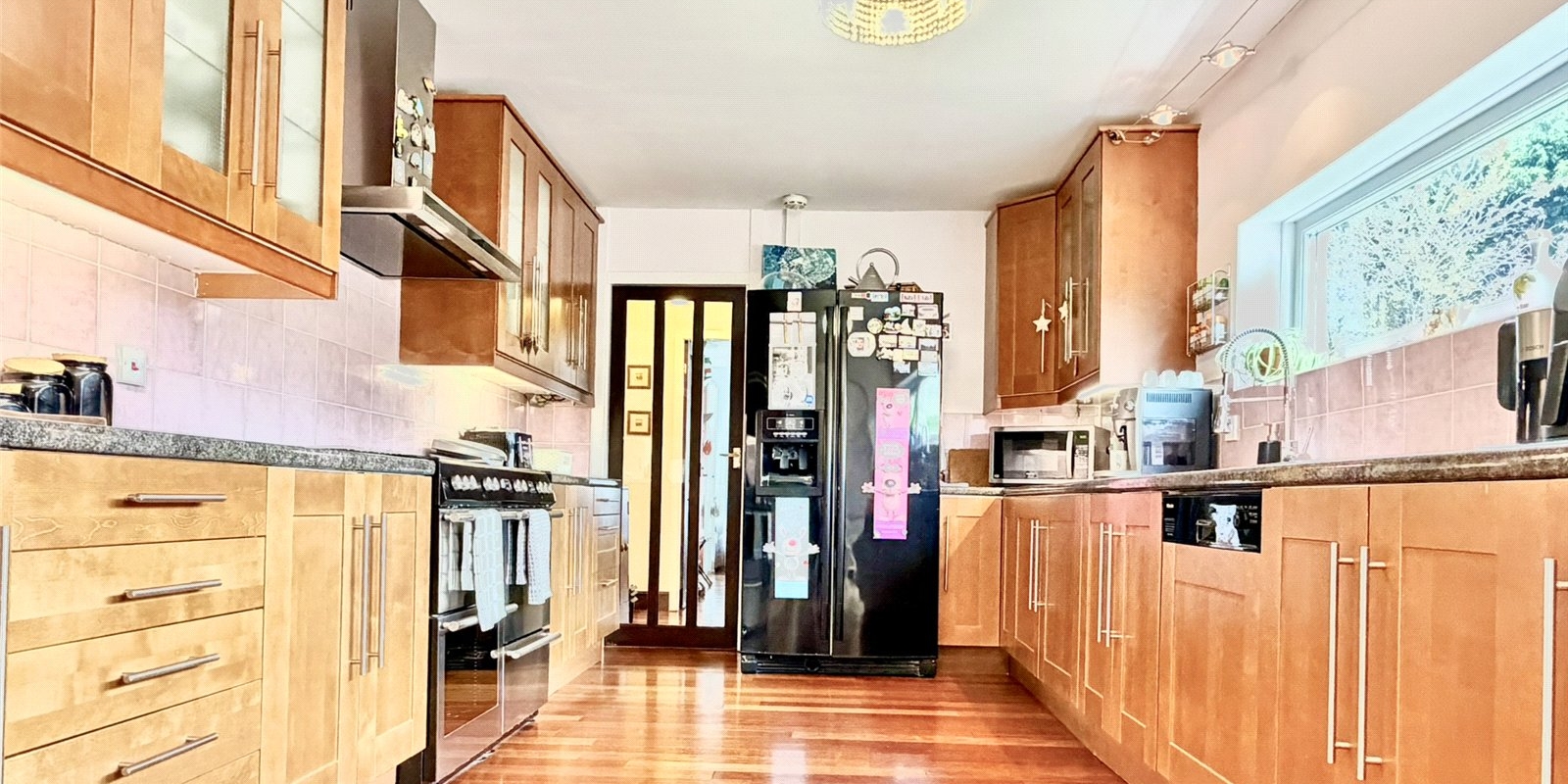 At the heart of the home is a stunning 27' 9" lounge, flooded with natural light from floor-to-ceiling windows and centered around an elegant stone feature fireplace, creating a perfect space for both relaxation and entertaining. The contemporary high-gloss kitchen is equally impressive, featuring a breakfast area with direct access to the rear garden, seamlessly blending indoor and outdoor living.