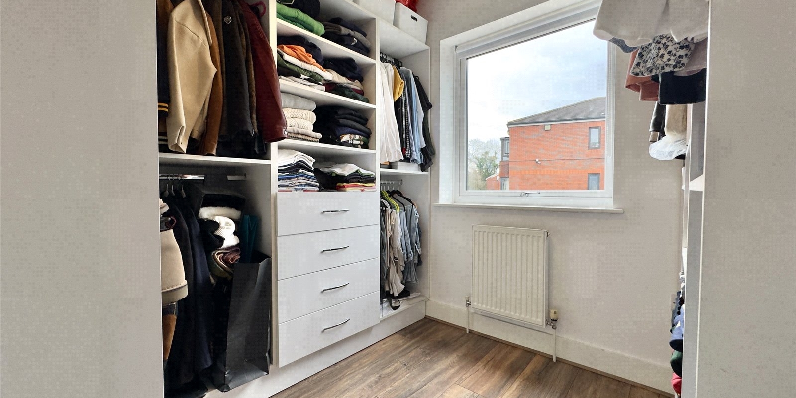 To the first floor, the property offers two generously proportioned double bedrooms along with a versatile third single bedroom, currently utilised as a walk-in wardrobe. These rooms are served by a sleek and modern family bathroom, finished to a high standard in keeping with the contemporary design of the home.