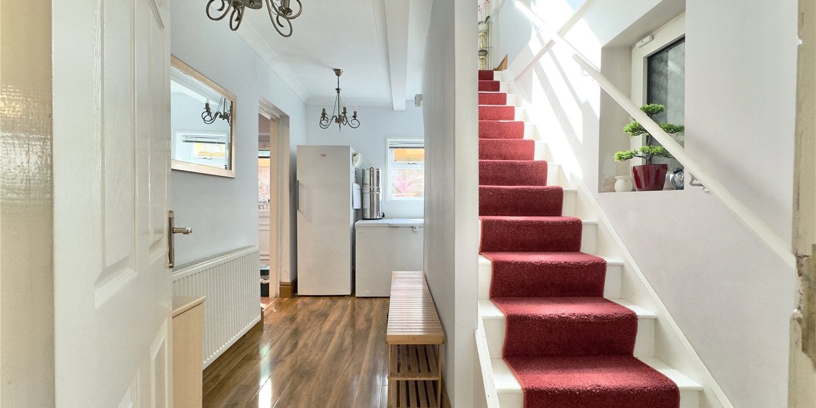 Further enhanced by energy-efficient features including solar panels with an accompanying battery and an air source heat pump, alongside traditional gas central heating, this home offers both sustainability and comfort.