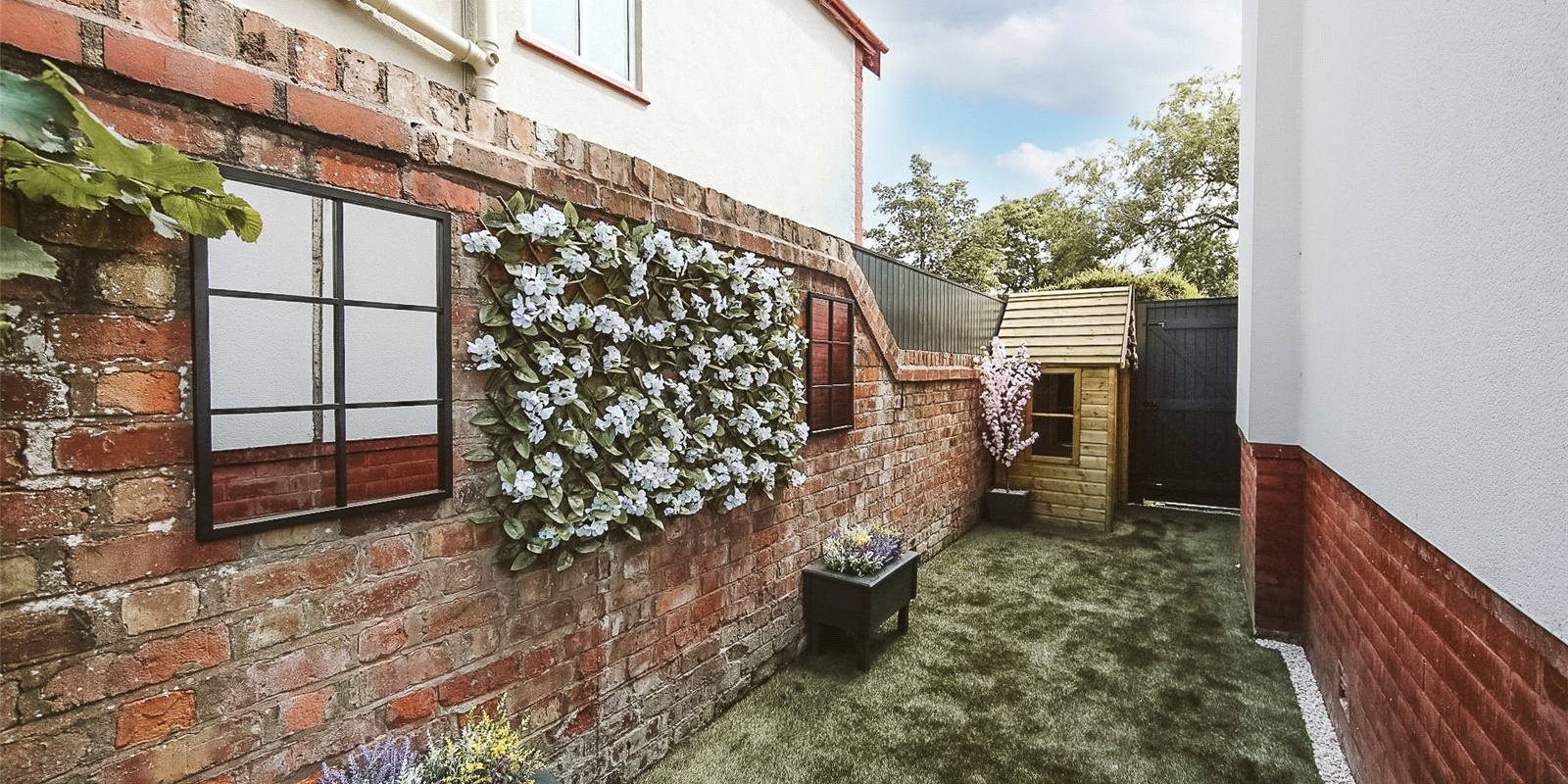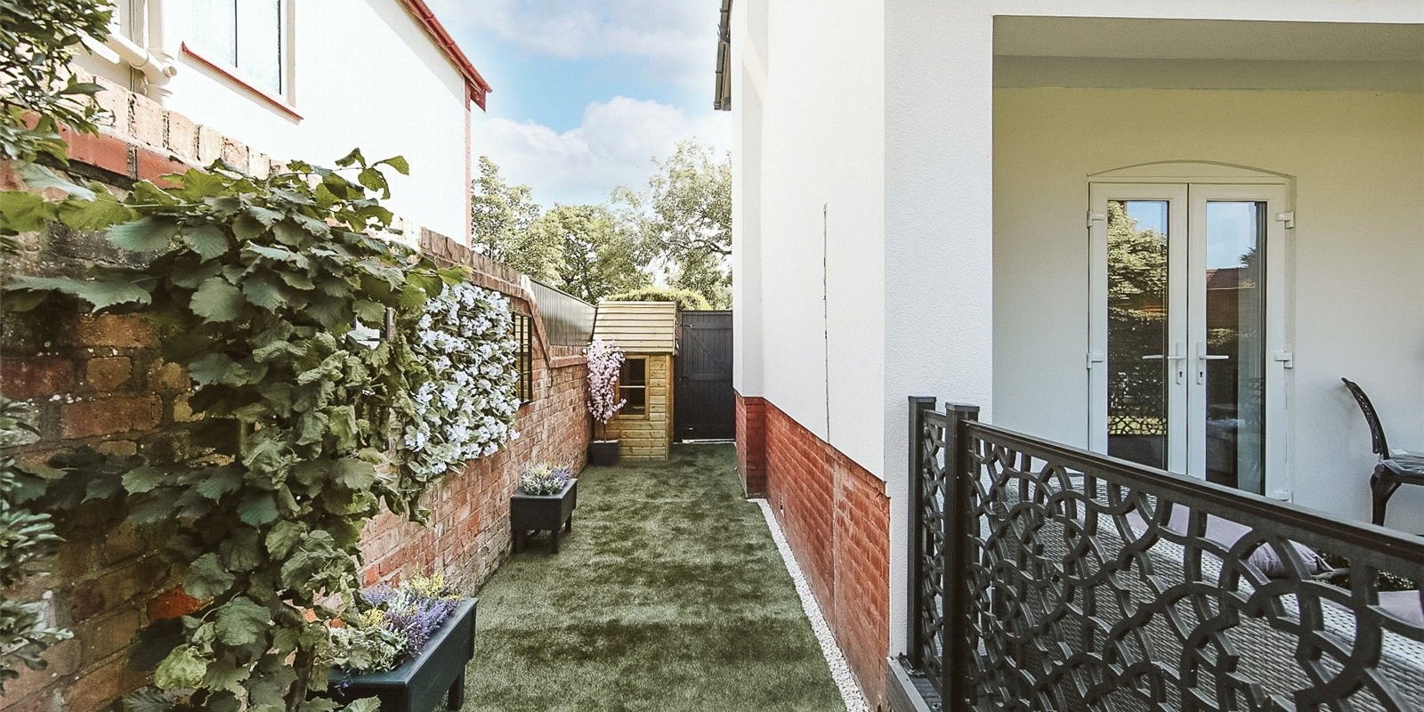 The rear garden is bathed in sunlight throughout the day.