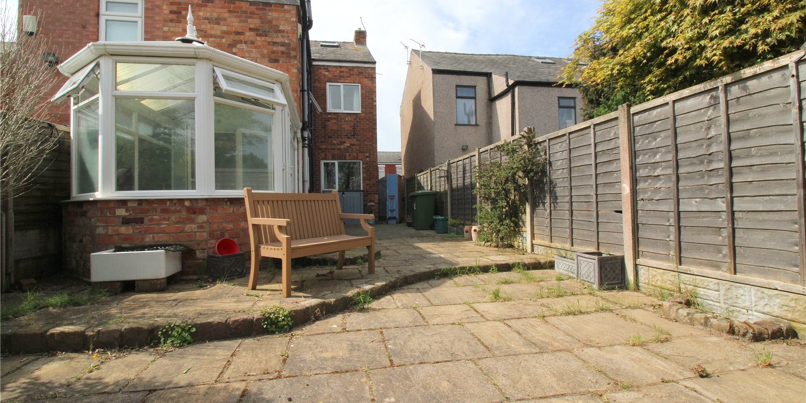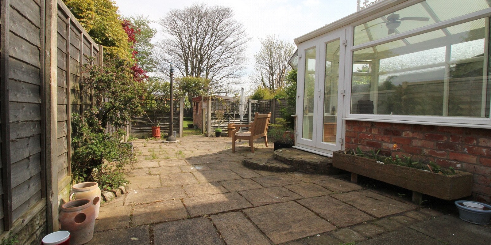 Externally, the property benefits from off-road parking for two cars at the front, while the large rear garden features a paved patio area and a brick-built outhouse — perfect for outdoor entertaining or additional storage.