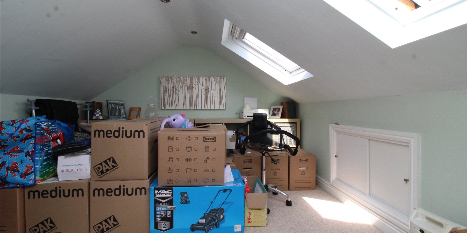 Two double bedrooms, with the primary bedroom providing access to a useful loft space suitable for a home office or playroom