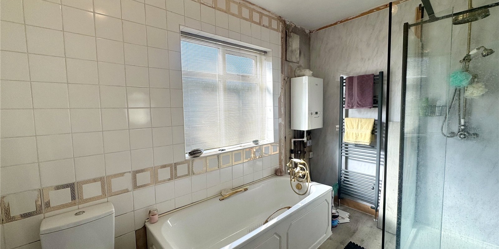 All three bedrooms are well sized, and the family bathroom features both a bath and a separate walk-in shower for added convenience.