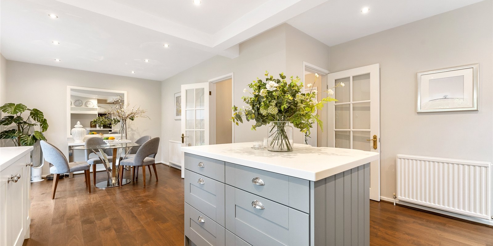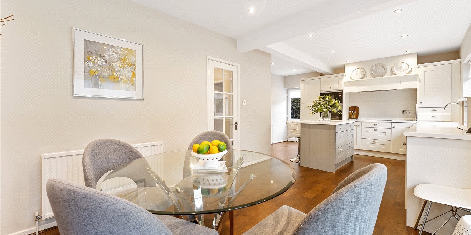 The heart of the home is undoubtedly the stunning kitchen. Fitted with high-quality cabinetry, sleek work surfaces and integrated appliances, it has been designed with both style and practicality in mind. A central island provides additional preparation space and informal seating, while the open-plan flow into the dining area makes it perfect for everyday living and entertaining alike.