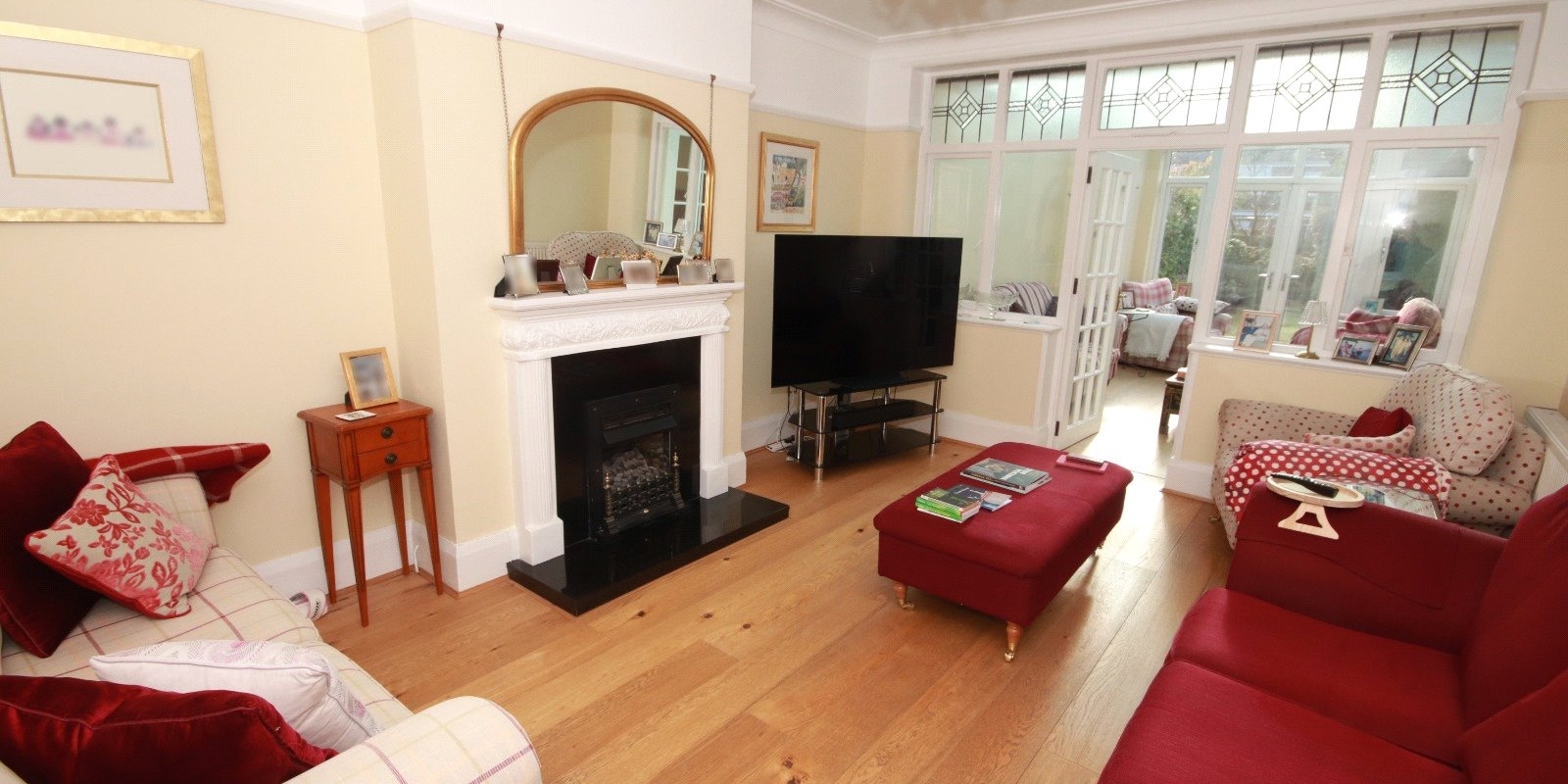 The rear of the property features a cosy living room that opens into a charming orangery/sun room, perfect for year-round enjoyment. Upstairs, the first floor hosts four well-proportioned bedrooms, including a main bedroom with an en-suite, as well as a contemporary family bathroom and separate WC. The converted loft provides an impressive fifth bedroom, complete with a dressing area and en-suite bathroom featuring a corner bath.