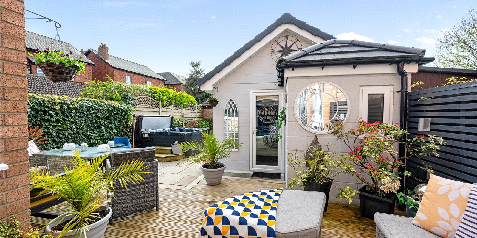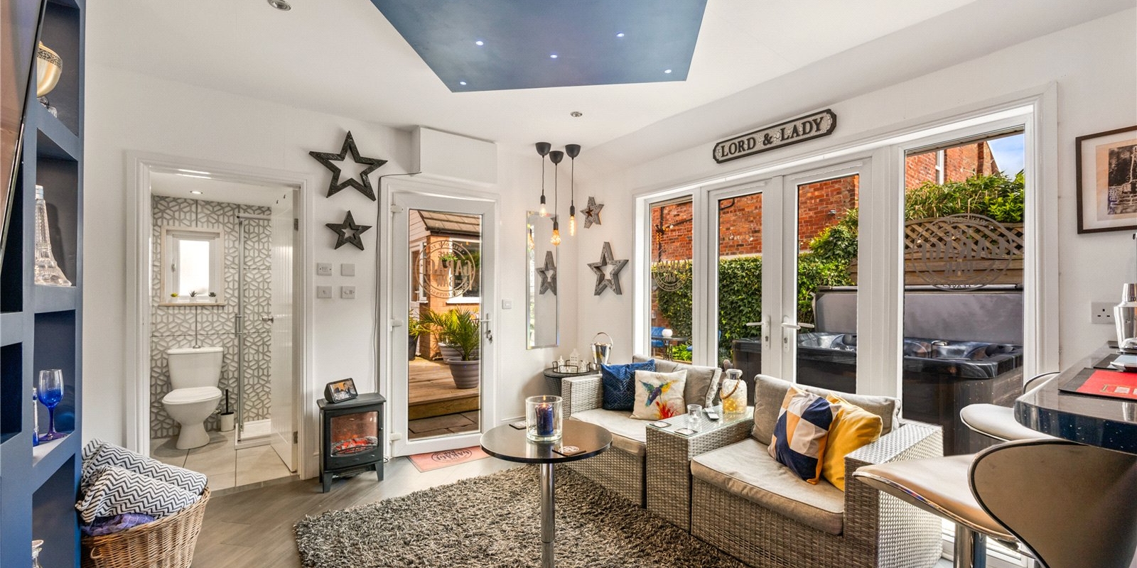 A standout feature of this property is the converted outhouse, which has been transformed into a versatile entertaining space complete with its own shower room. This fantastic addition is perfect for hosting guests, creating a home office, gym, or even occasional accommodation.