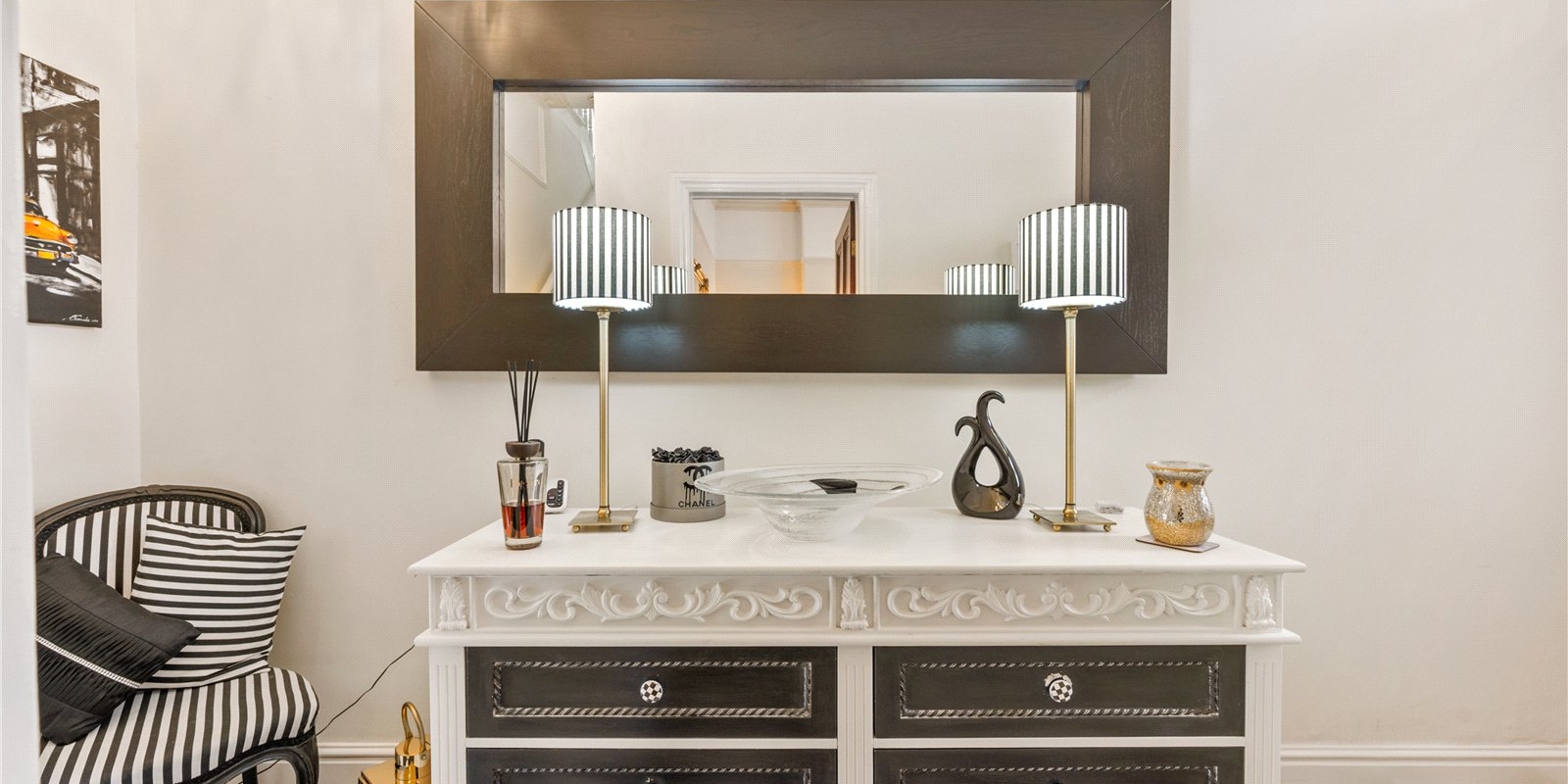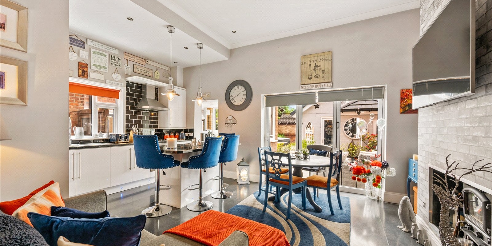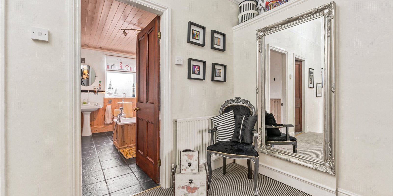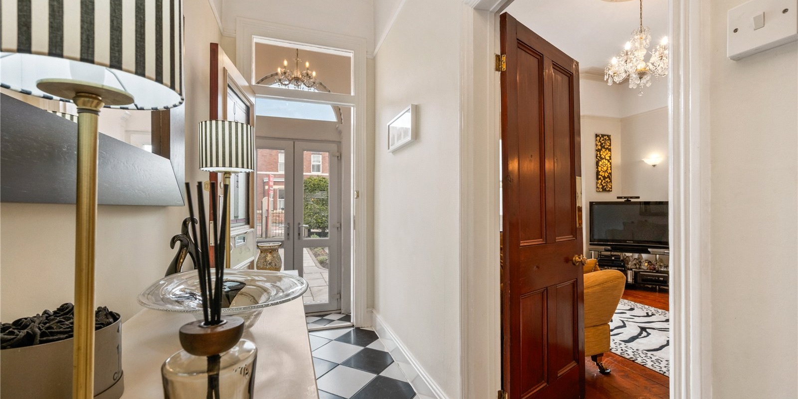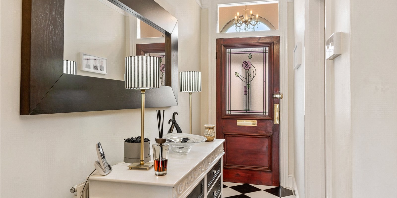 Upon entering, you are welcomed by a spacious and light-filled hallway, complete with striking stained glass details that enhance the home’s character and create a warm first impression. The front reception room is elegantly styled, offering a cosy yet sophisticated space ideal for relaxing evenings or hosting guests.