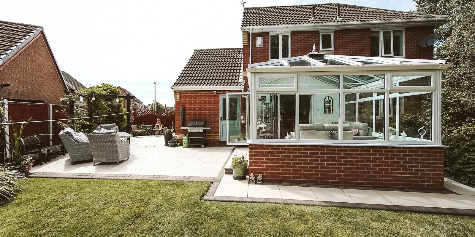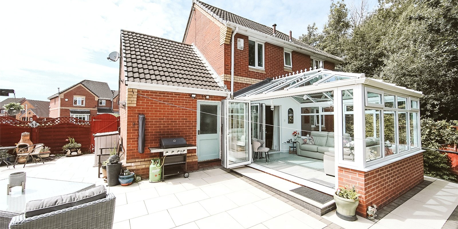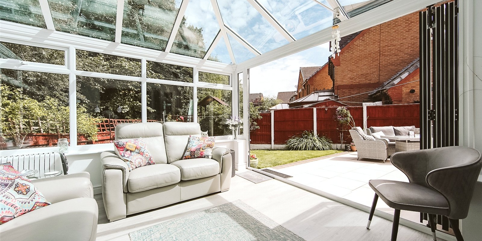 Generous living spaces and a sun room with bi-fold doors leading to a private garden