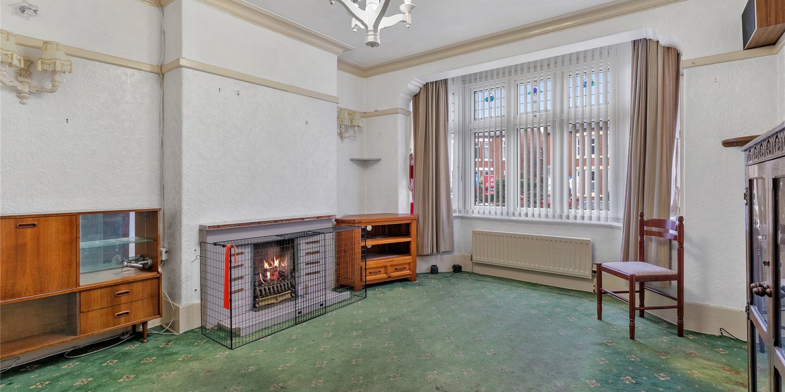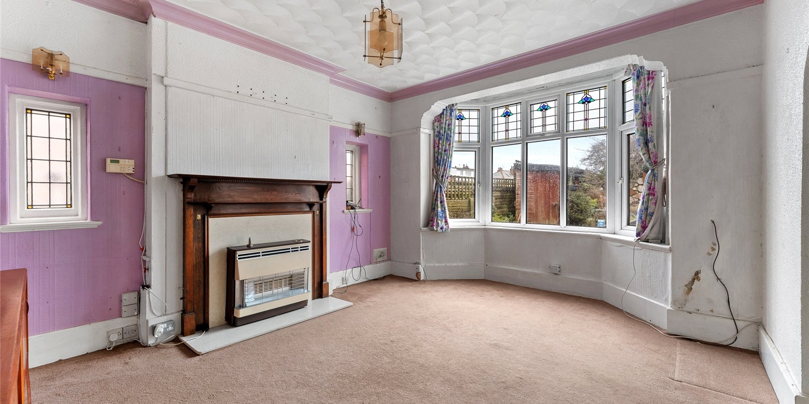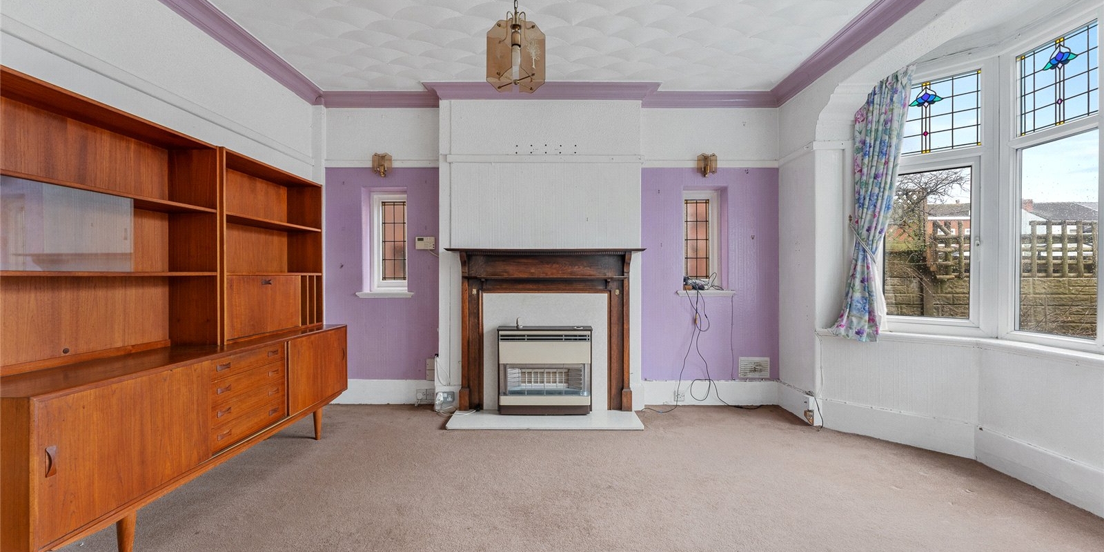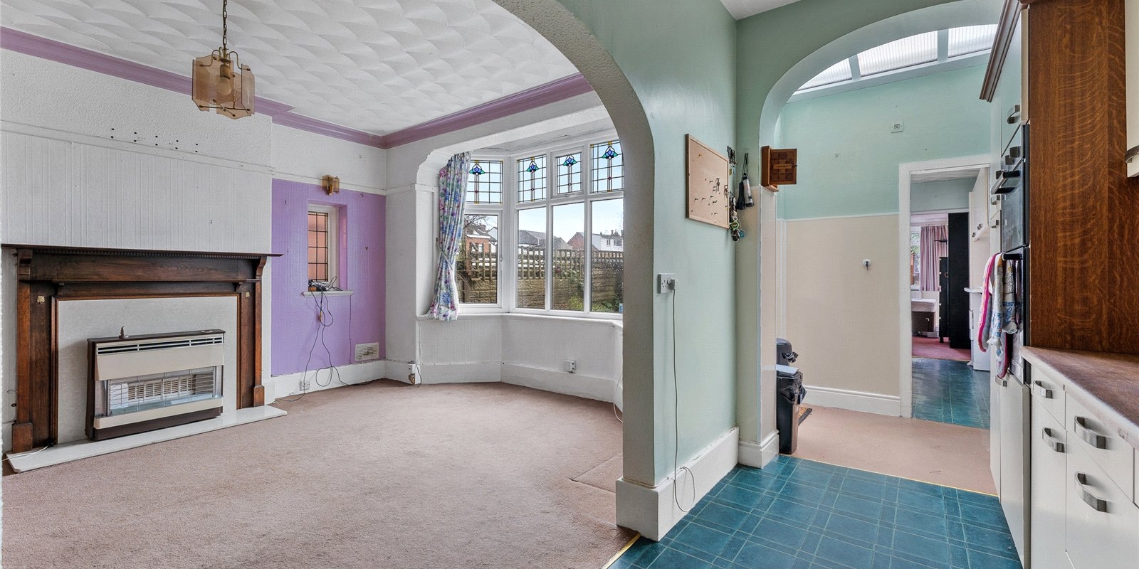 The main lounge is a standout feature, boasting a striking large bay window that floods the room with natural light. A charming fireplace sits at the heart of the room, creating a cosy focal point—perfect for evenings in or gatherings with loved ones.