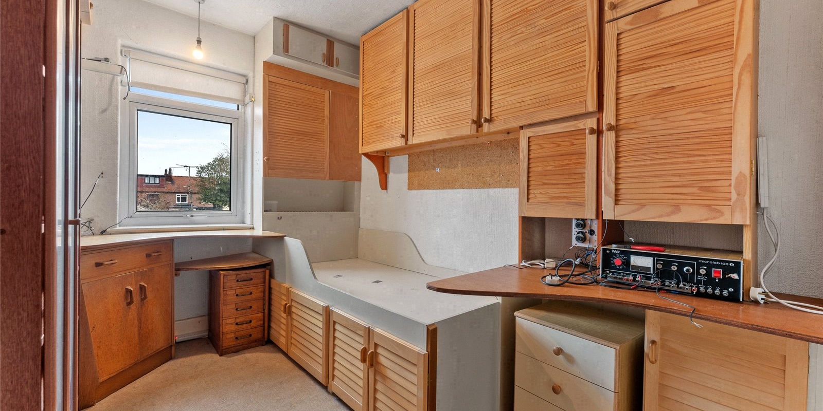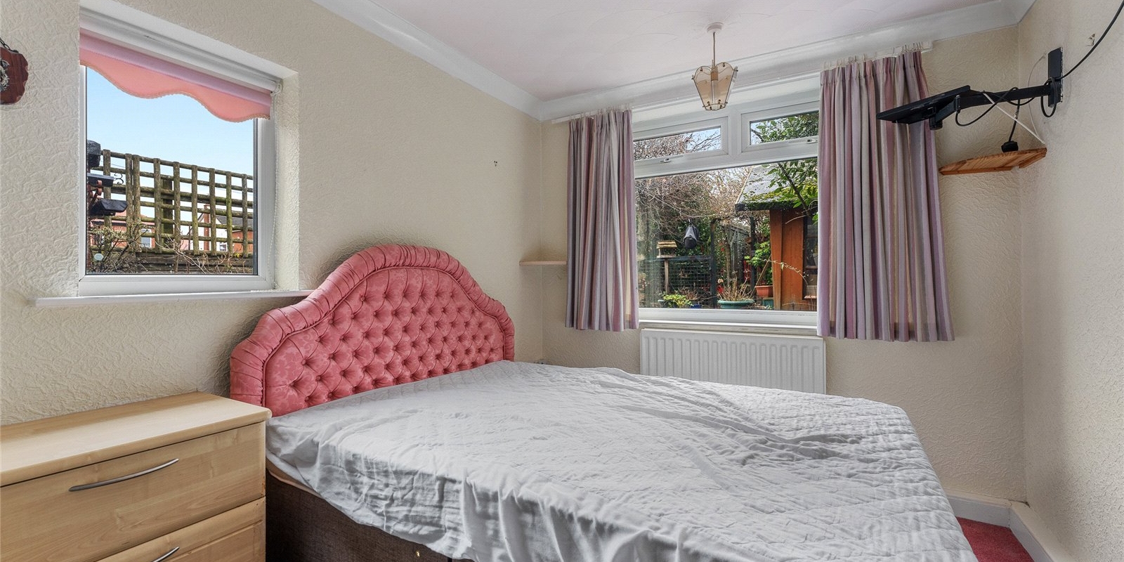 Bedroom Four is a well-proportioned single bedroom, ideal as a child’s room, guest bedroom or home office. Positioned to the rear, it enjoys pleasant garden views through a modern UPVC window.