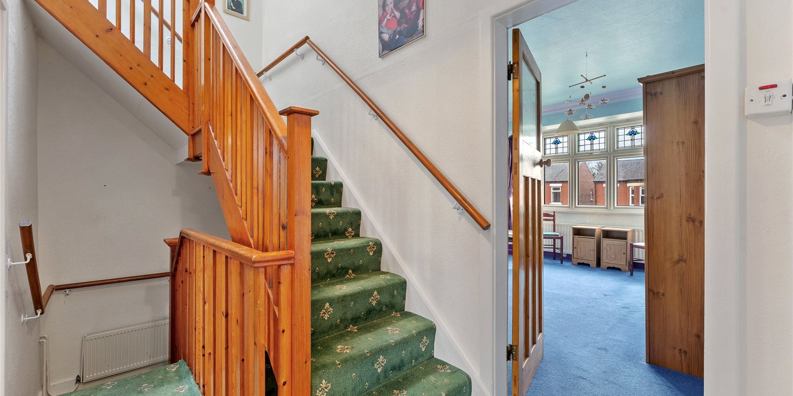 Upon entering the property, elegant doors lead to two generously sized reception rooms, ideal for both formal entertaining and relaxed family living. A useful under-stairs storage area adds practicality.