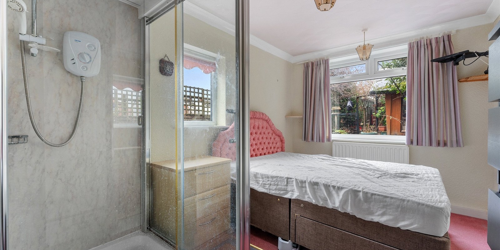 Tucked away to the rear of the property, this generous double bedroom provides privacy and comfort. Complete with its own shower room and WC, it offers an ideal self-contained space for guests, teenagers or multi-generational living. A large UPVC window overlooks the garden and fills the room with light.