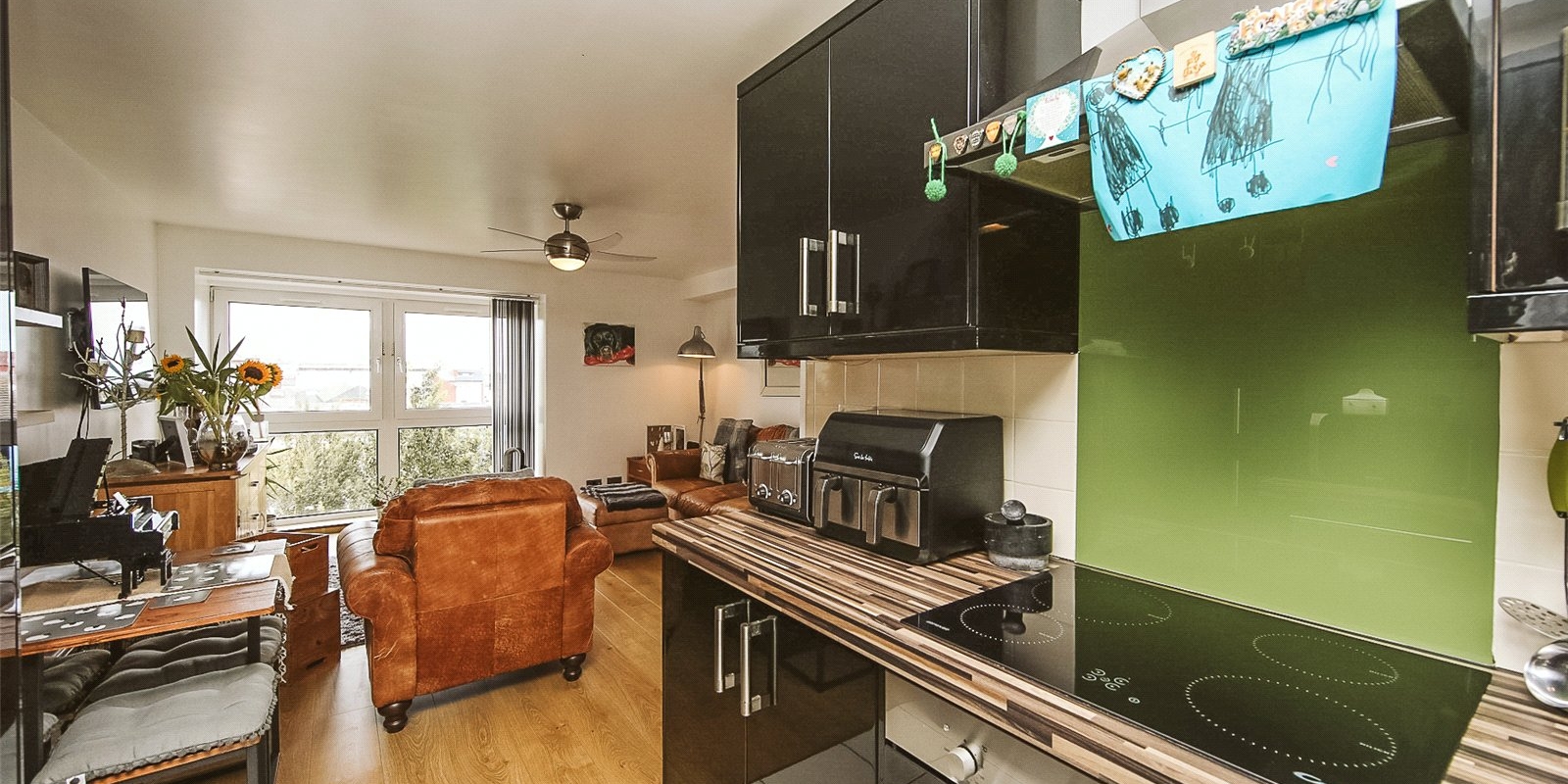 Inside, the apartment comprises a spacious hallway with useful built-in storage, leading into a bright and generously sized open-plan lounge and dining area. The kitchen has been recently updated and features stylish units, ample worktop space, and modern appliances, ideal for everyday living and entertaining.
