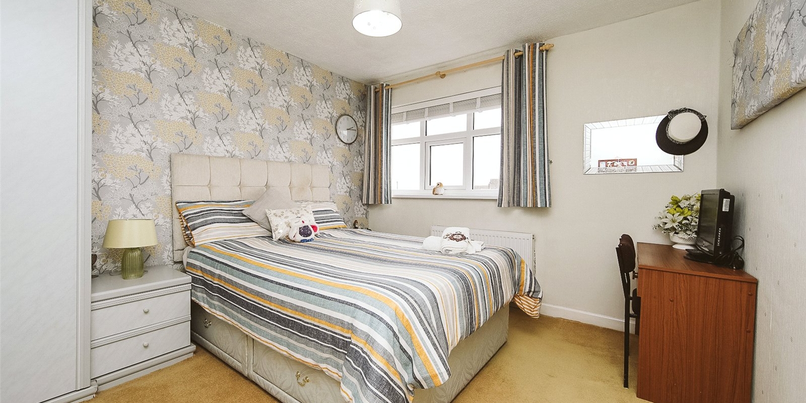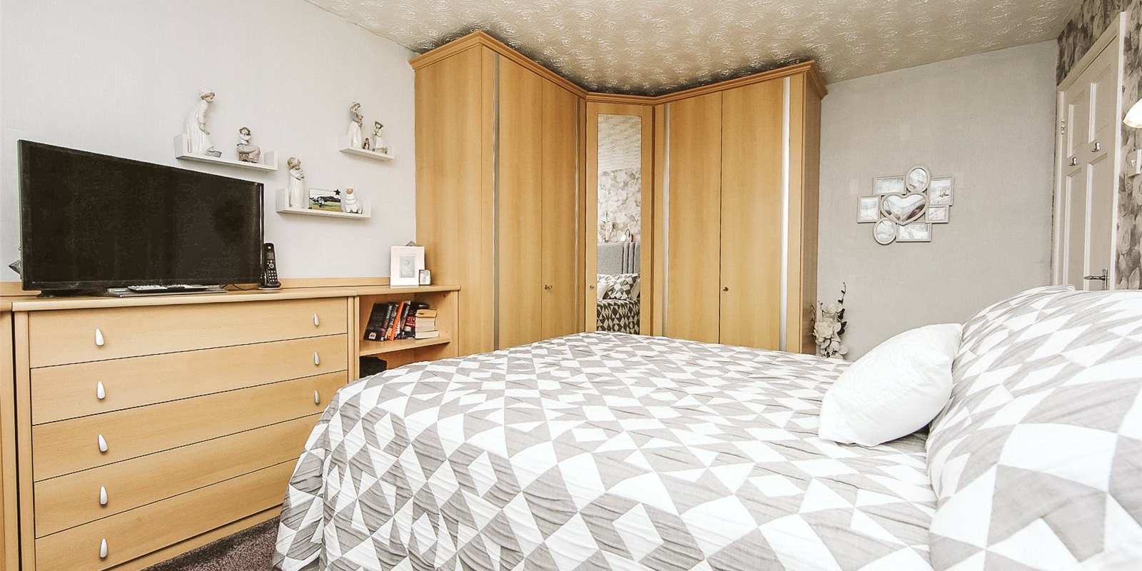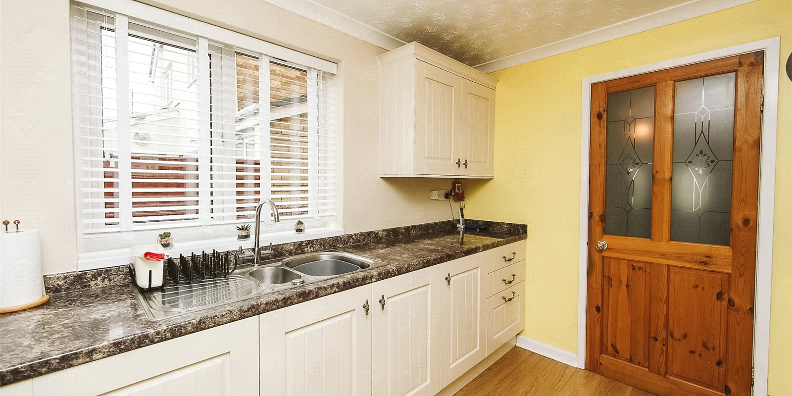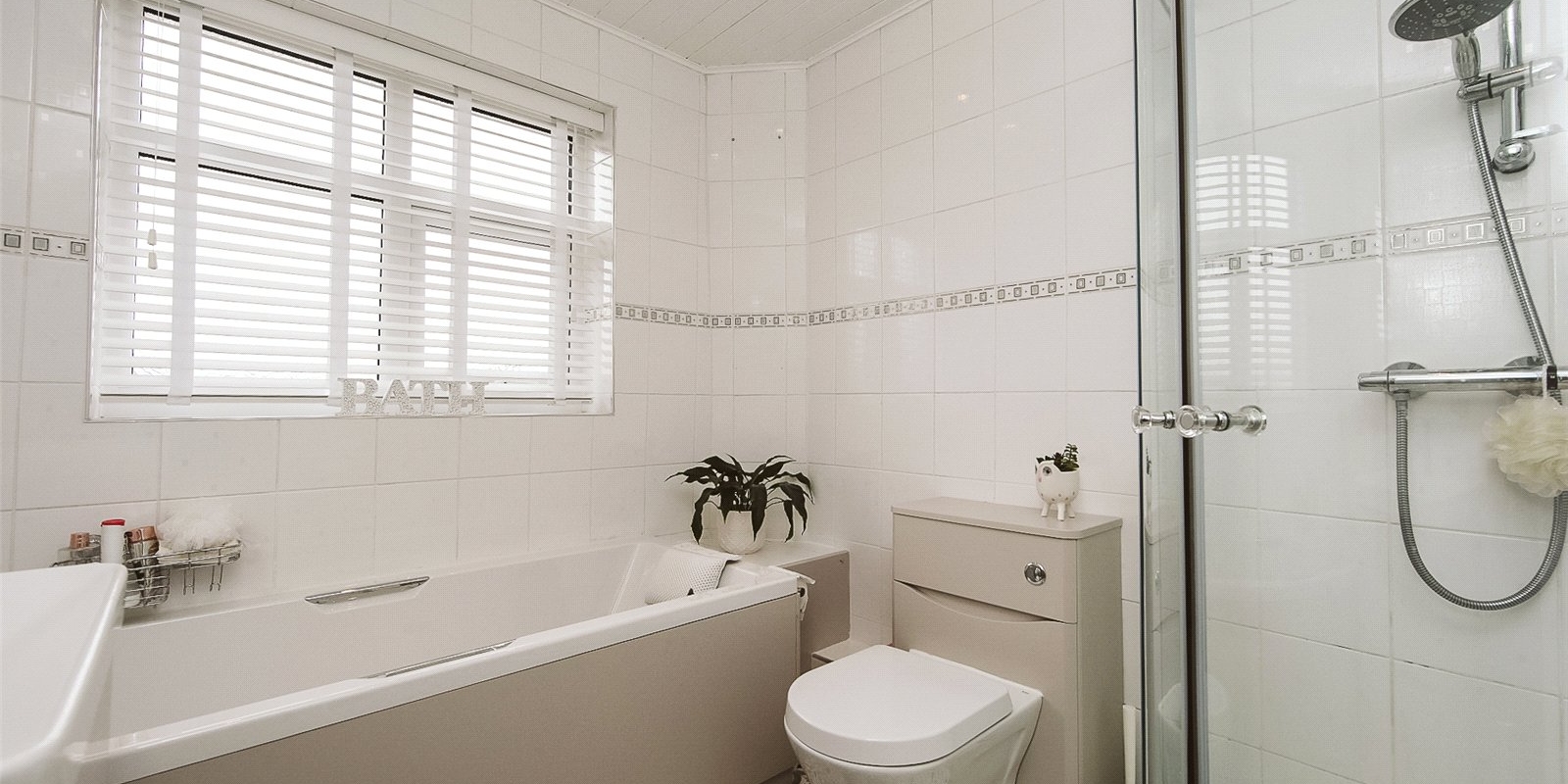 Upstairs, the property boasts three comfortable bedrooms, with the master featuring fitted wardrobes. The family bathroom is a particularly impressive space, fitted with both a bath and a separate shower, providing practicality for busy households.