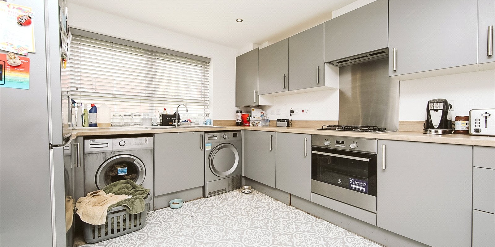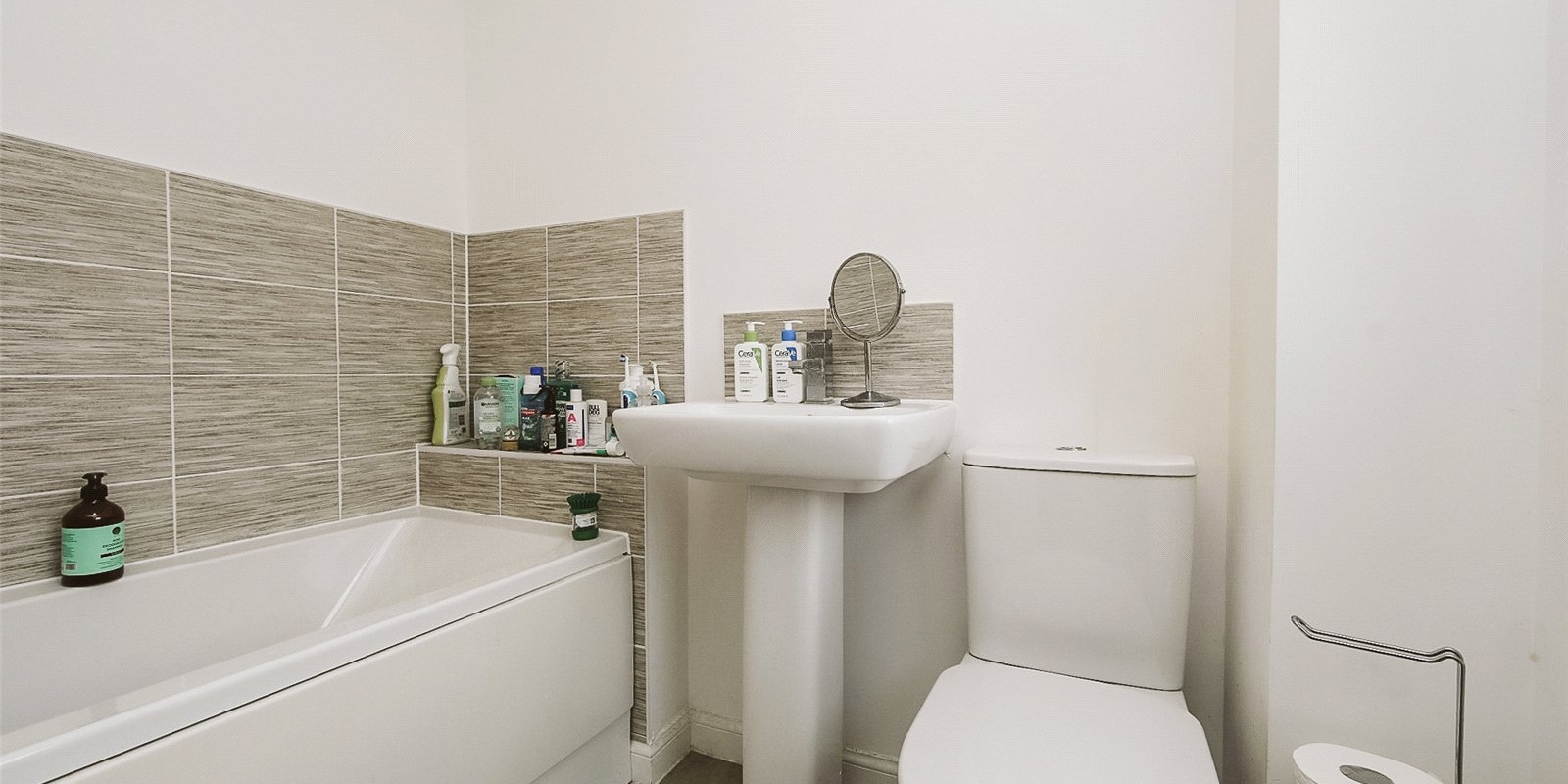 Upstairs, you’ll find three well-sized bedrooms, all enjoying plenty of natural light. The family bathroom is fitted with a modern suite.