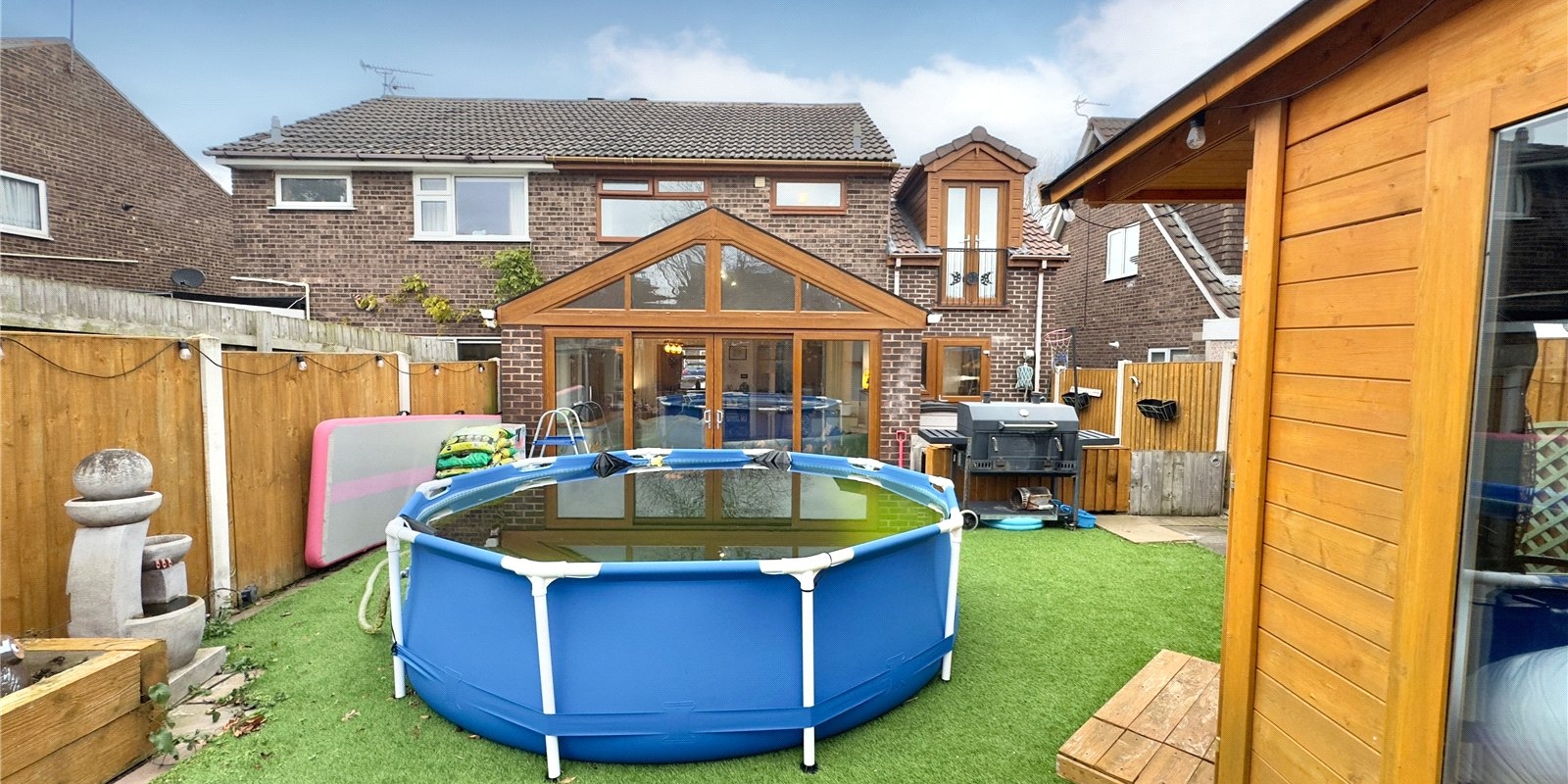 Outdoor enthusiasts will appreciate the generous garden space, perfect for children's play, entertaining guests, or simply enjoying a quiet cup of tea whilst watching the world go by. The detached cabin adds remarkable flexibility, serving brilliantly as a home gym for fitness enthusiasts or a peaceful study for those working from home.