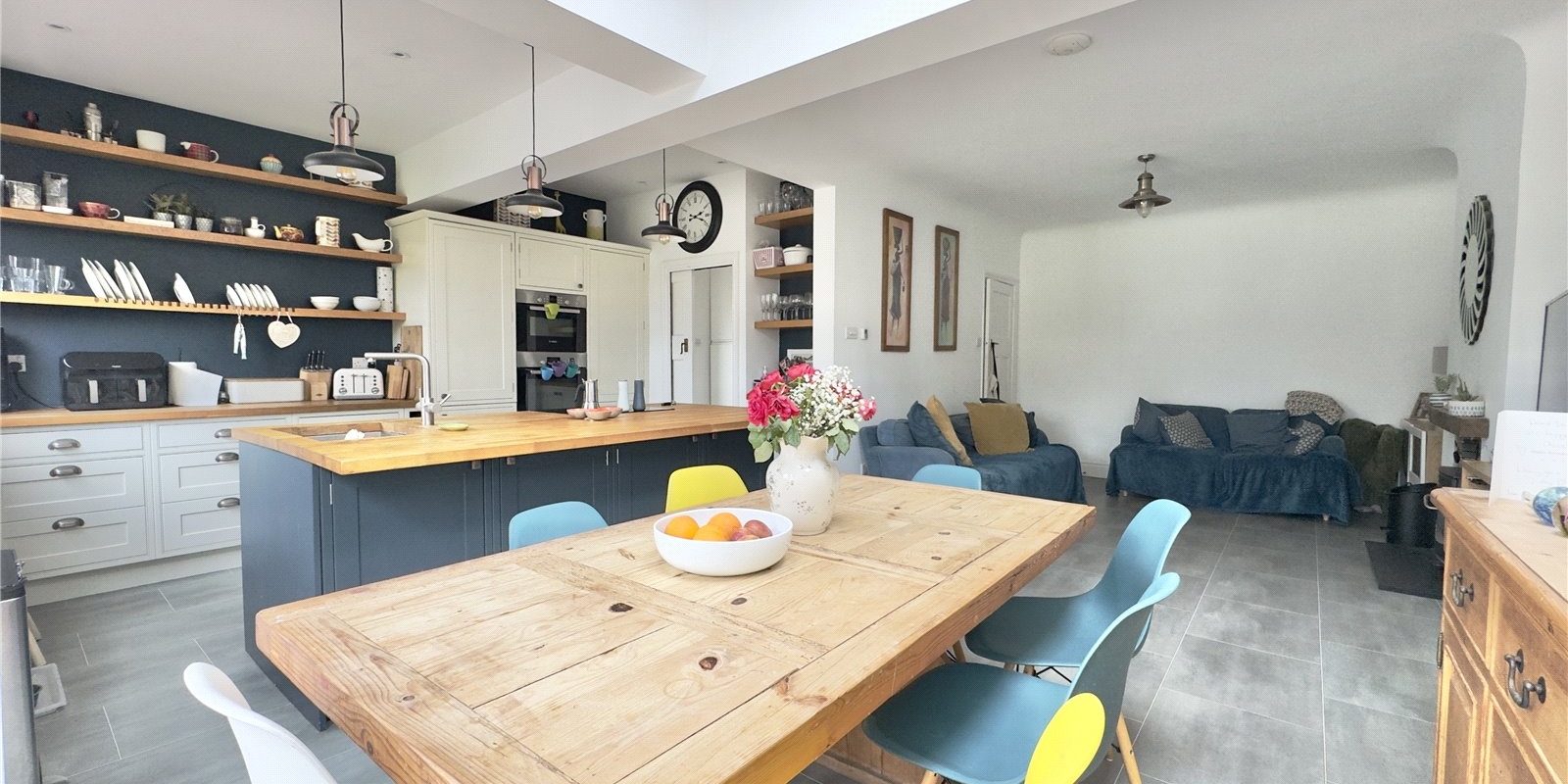 To the rear, the property has been thoughtfully extended to create a superb open-plan kitchen and dining area, forming the true heart of the home. Designed with both style and functionality in mind, the kitchen benefits from underfloor heating and an instant hot water tap, alongside ample storage and workspace. A separate utility room adds further convenience, keeping everyday tasks neatly tucked away. The dining area flows seamlessly out to the garden, making it perfect for entertaining and modern family living.