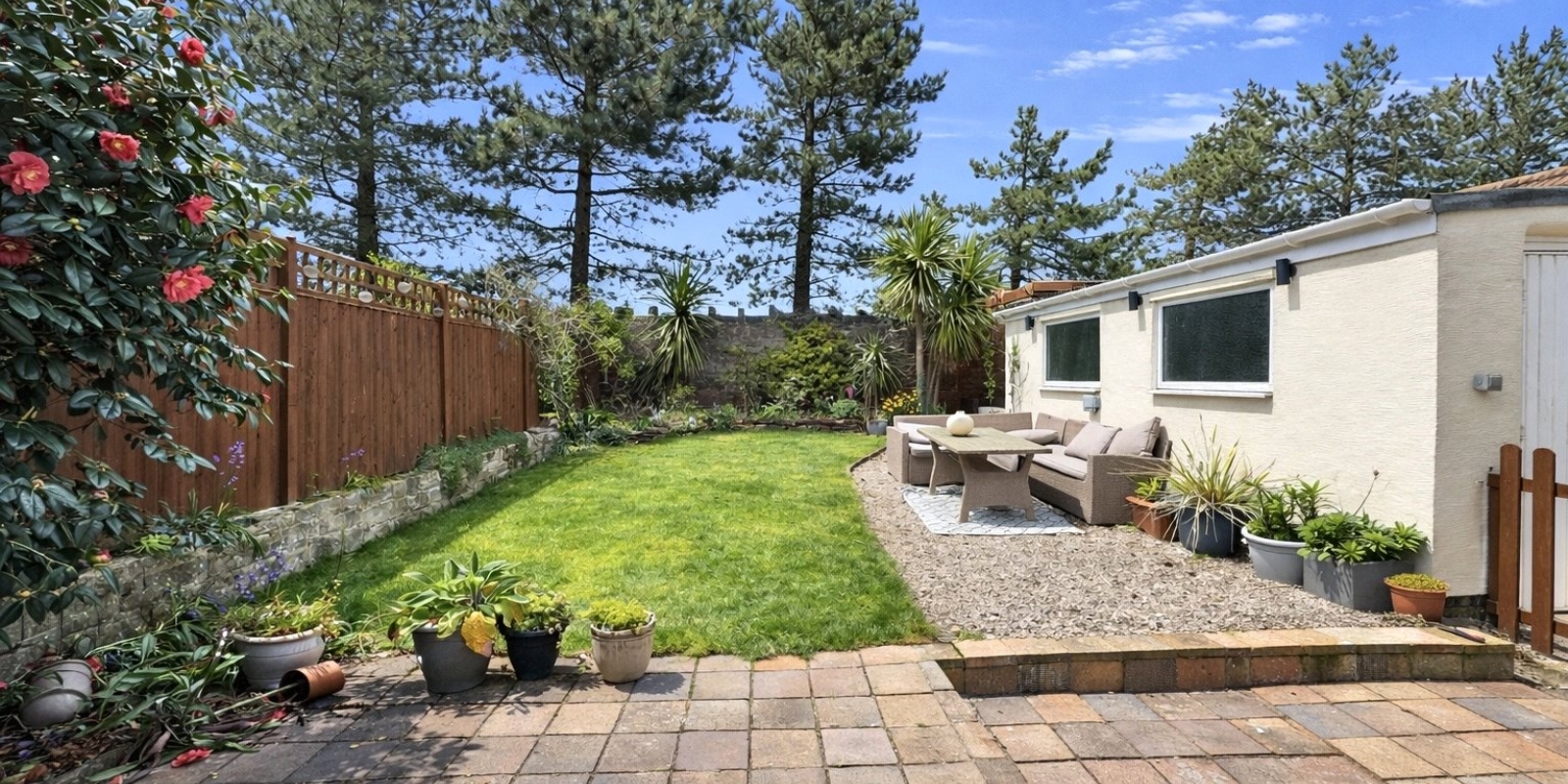 • Landscaped, low-maintenance rear garden ideal for entertaining