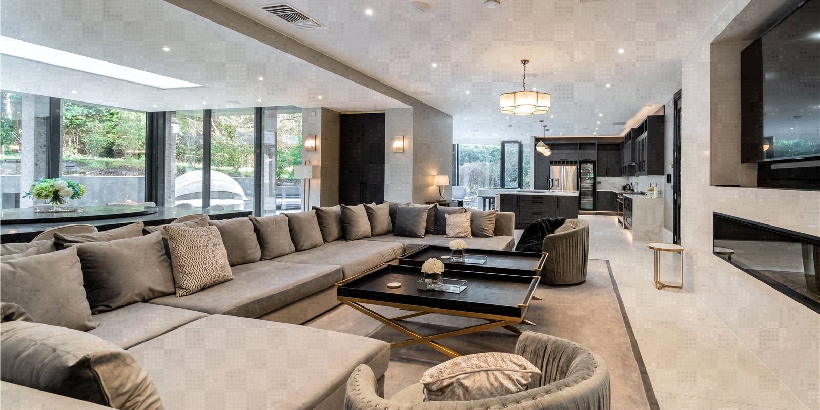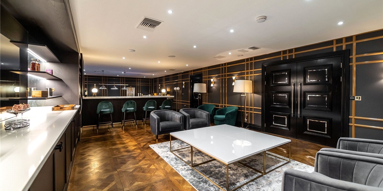Internally, one is drawn to the bold material palette and inspried entrance. In summary, the ground floor features a grand entrance hallway, formal lounge, study, playroom, utility room, and W.C. The breathtaking and luxurious open-plan family living kitchen diner boasts a wealth of superior fixtures and fittings. Additionally, the ground floor provides access to a stunning leisure suite, including a spacious gym, swimming pool with bar area, sauna, steam room, and shower room.