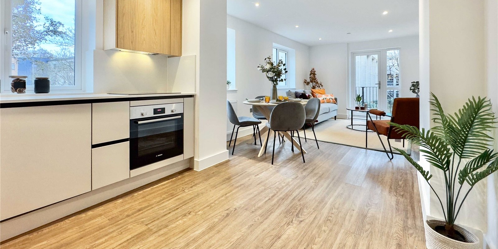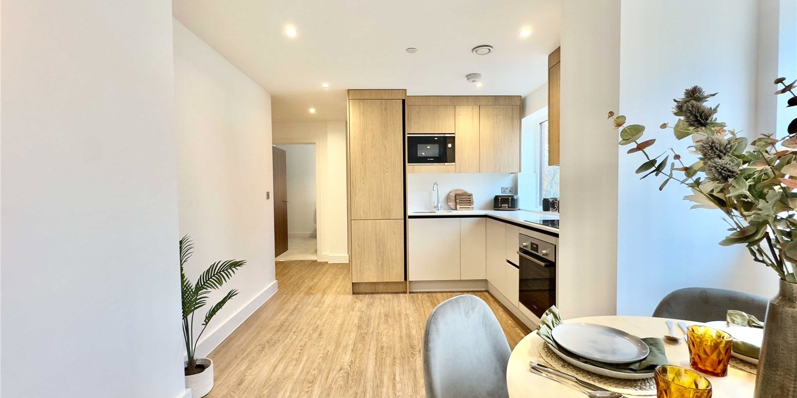 Number 8 located on the first floor, is an exceptional one-bedroom apartment with finishing touches that complement your lifestyle. Open plan kitchen, dining and living areas allow for a feeling of easy flow and space. Quartz worktops with matching upstands offer the perfect combination of style and practicality, complimented by premium Bosch appliances. For the bathroom, elegant design has been combined with practical solutions to ensure you start every day feeling refreshed. Bathrooms include contemporary sanitaryware with concealed fittings, heated towel radiators and luxurious baths. The design ethos is luxury-as-standard which is why you’ll also find hotel-style showerheads and designer tiles in every bathroom.