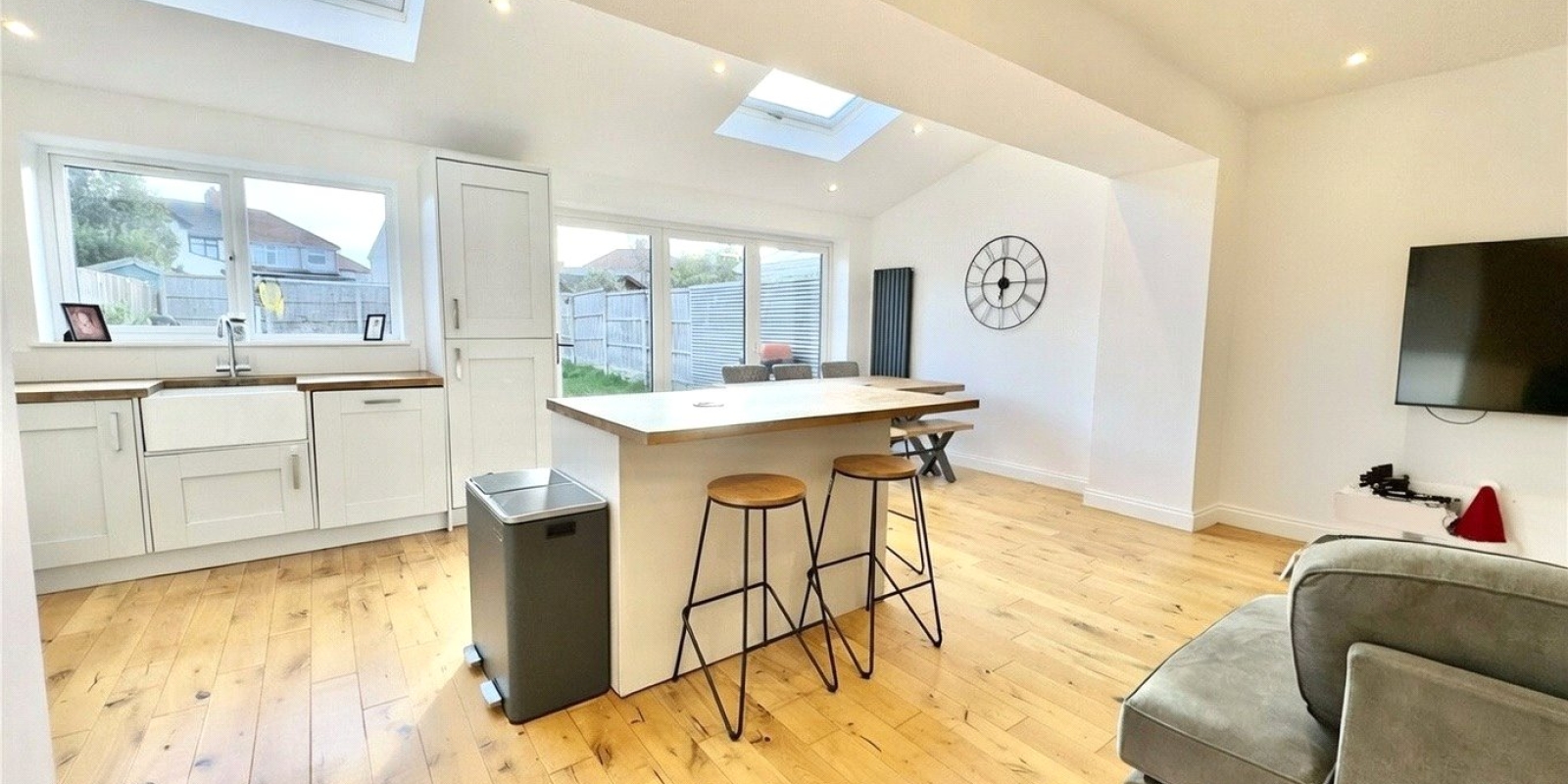 The heart of the home features an impressive open-plan kitchen and entertaining space, ideal for family gatherings and dinner parties alike. The recent extension to the rear has transformed the living experience, with stunning bifold doors creating a seamless connection between indoor and outdoor spaces. This clever design floods the interior with natural light whilst providing easy access to the private garden.