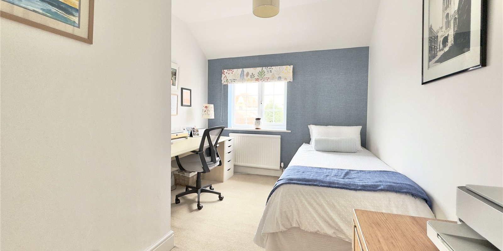 Upstairs, five well-proportioned bedrooms provide comfortable and flexible accommodation for family life. Each room enjoys excellent natural light, enhancing the sense of space throughout the upper floor. The Master bedroom benefits from its own en-suite shower room, while a spacious family bathroom serves the remaining bedrooms. Outside, the property is complemented by a mature and private rear garden, a peaceful retreat with established planting, lawned areas and patio spaces ideal for outdoor dining or relaxing in warmer months.