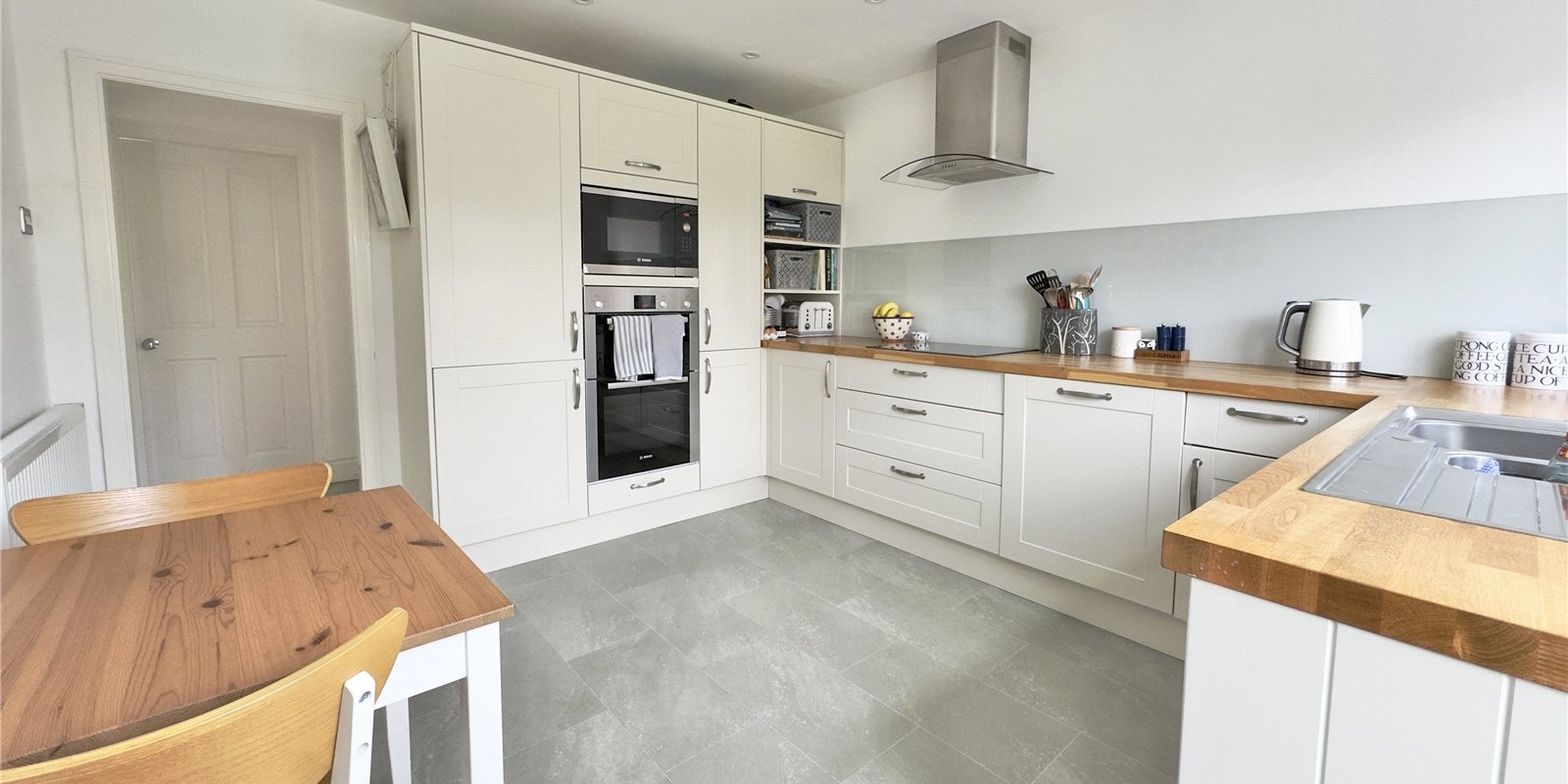 The accommodation begins with a welcoming reception hall that sets the tone for the rest of the home. A series of versatile living spaces branch off from here, including a spacious lounge with an attractive feature fireplace, a formal dining room perfectly suited to entertaining, and an additional reception room that could easily serve as a sitting room, snug, or home office depending on lifestyle needs. The kitchen blends traditional charm with modern practicality, featuring solid oak work surfaces, generous storage and direct access out to the rear garden.