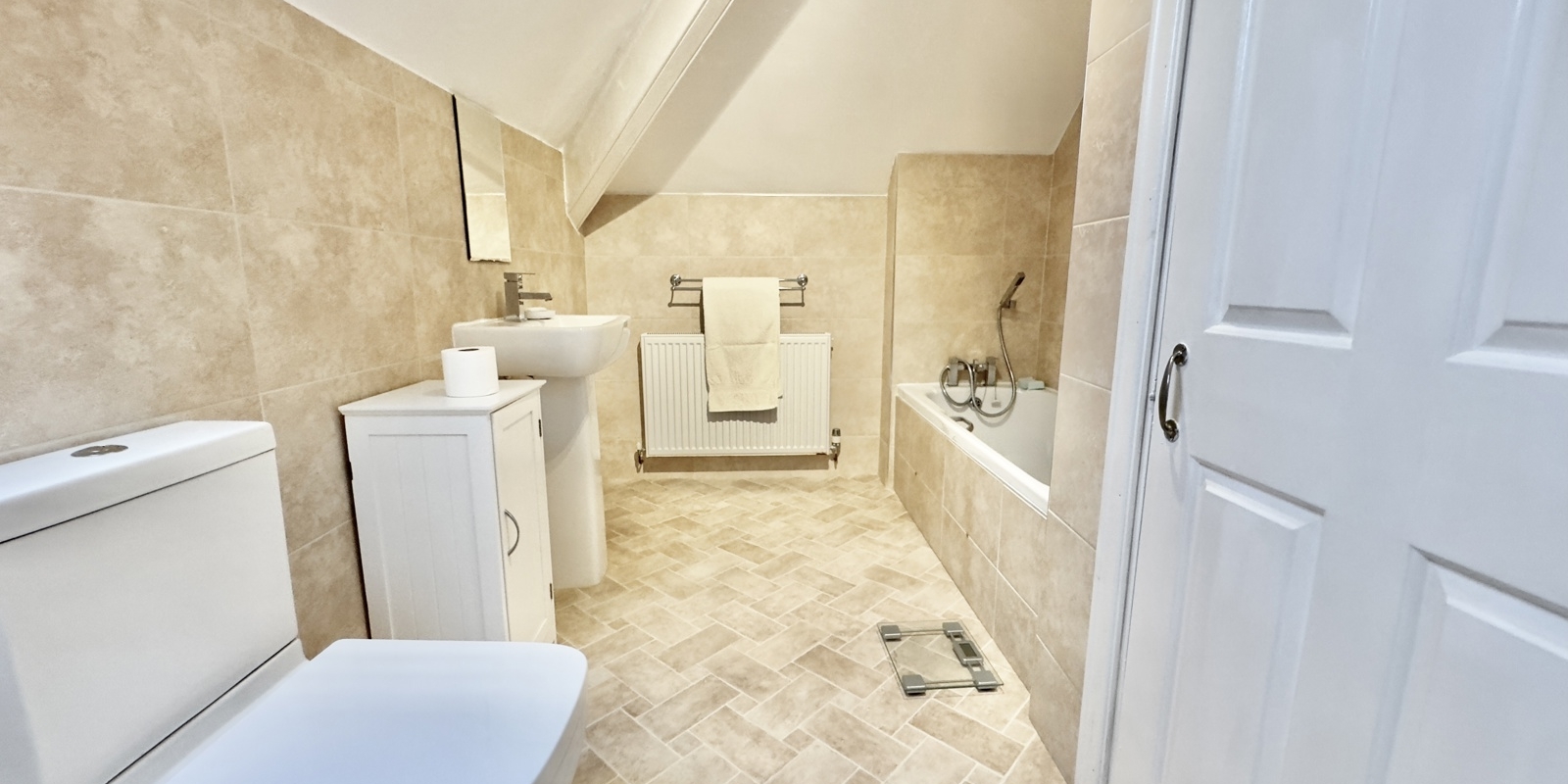 Accessed via an external staircase leading to a private vestibule and welcoming hallway, the flexible accommodation comprises three generous reception rooms, one of which is currently utilised as a bedroom, providing adaptable living space to suit modern family life. There is a breakfast kitchen, bathroom and separate WC completing the first floor. To the upper level there are two well-proportioned double bedrooms, including a particularly spacious Master bedroom with an interconnecting store room, offering excellent potential to create an en-suite bathroom or dressing room, along with a second bathroom serving the floor.
